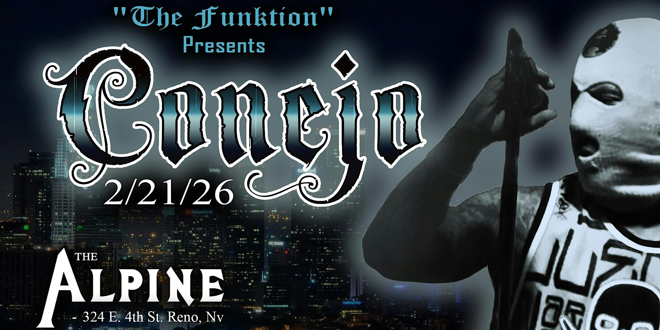 by admin12Feb CONEJO Live In Concert at The Alpine – Reno, NV CONEJO Live In Concert at The Alpine – Reno, NV 5 5 people viewed this event. “THE FUNKTION” Presents Legendary Chicano Rap Artist “CONEJO” performing Live in Concert for the first time ever in Reno, Nv. Tickets-RSVP Link Date And Time Sunday, February 22nd, 2026 02:00 AM (PST) Venue The Alpine Location 324 East 4th Street, Reno, NV 89512 Event Types Concert or PerformanceMusic Event Category NevadaReno Share With Friends Facebook Twitter Linkedin Xing Pinterest Share This Post:
