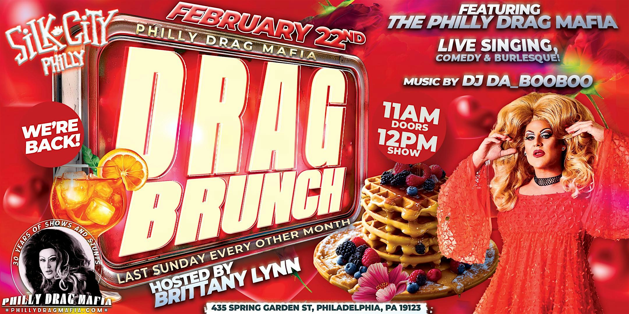 by admin12Feb Drag Brunch at Silk City at Silk City – Philadelphia, PA Drag Brunch at Silk City at Silk City – Philadelphia, PA 6 6 people viewed this event. Drag brunch returns to Northern Liberties at everyone’s fave spot-Silk City! Tickets-RSVP Link Date And Time Sunday, February 22nd, 2026 04:00 PM (PST) Venue Silk City Location 435 Spring Garden Street, Philadelphia, PA 19123 Event Types Concert or PerformancePerforming & Visual Arts Event Category PennsylvaniaPhiladelphia Share With Friends Facebook Twitter Linkedin Xing Pinterest Share This Post: