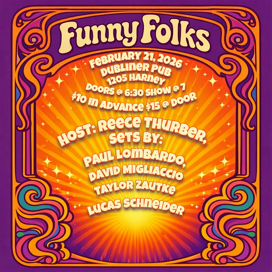 by admin12Feb Funny Folks at 1205 Harney St – Omaha, NE Funny Folks at 1205 Harney St – Omaha, NE 4 4 people viewed this event. Get ready to laugh till you cry with the hilarious lineup at Funny Folks – a night of non-stop comedy guaranteed to lift your spirits! Tickets-RSVP Link Date And Time Sunday, February 22nd, 2026 12:00 AM (PST) Venue 1205 Harney St Location 1205 Harney Street, Omaha, NE 68102 Event Types Concert or PerformancePerforming & Visual Arts Event Category NebraskaOmaha Share With Friends Facebook Twitter Linkedin Xing Pinterest Share This Post: