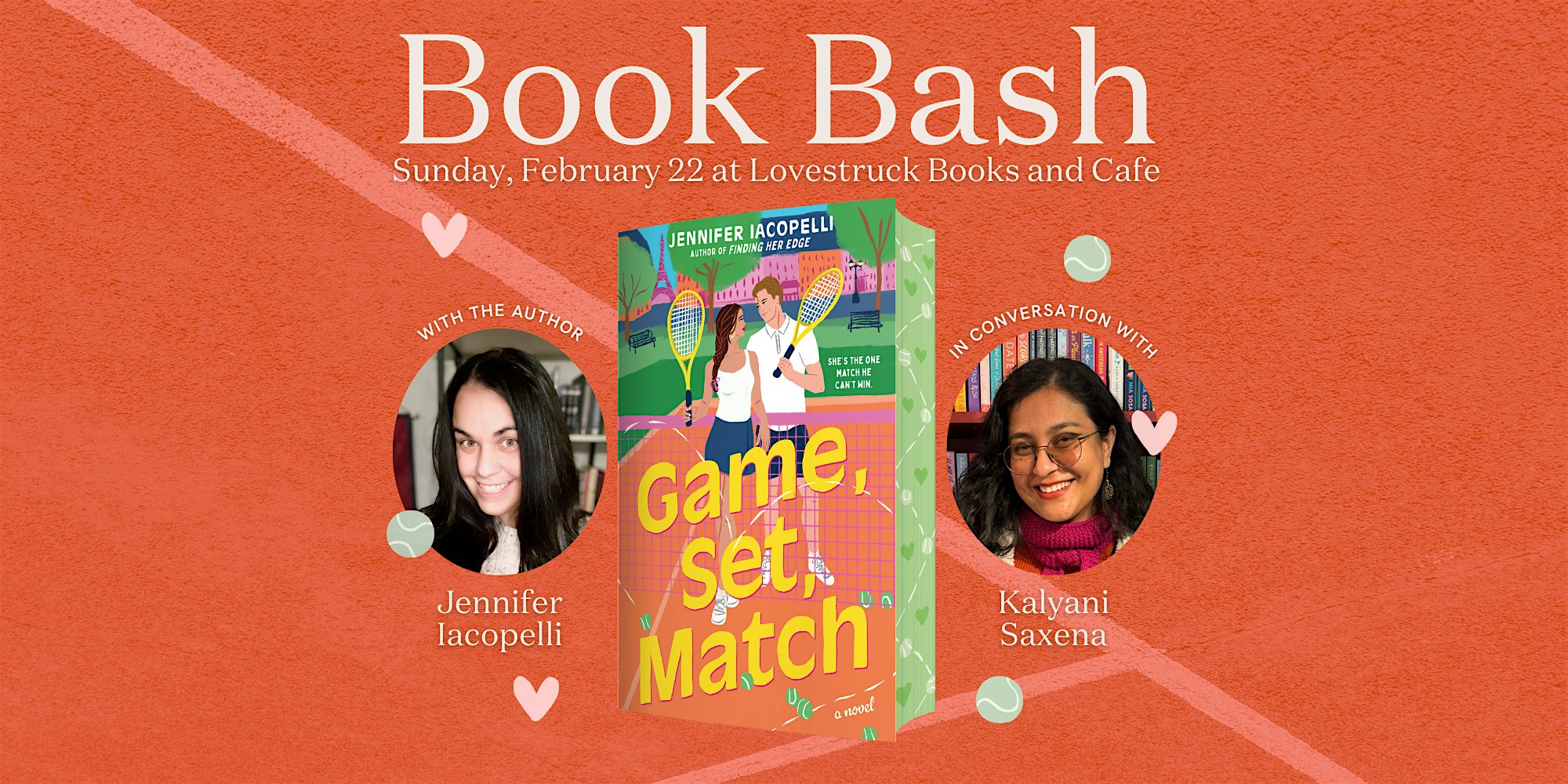 by admin12Feb Game, Set, Match Release Bash with Jennifer Iacopelli at Lovestruck Books & Cafe – Cambridge, MA Game, Set, Match Release Bash with Jennifer Iacopelli at Lovestruck Books & Cafe – Cambridge, MA 2 2 people viewed this event. In conversation with Kalyani Saxena, Jennifer’s talking tennis superstars, second chances, and chemistry that refuses to stay off the court. Tickets-RSVP Link Date And Time Sunday, February 22nd, 2026 08:00 PM (PST) Venue Lovestruck Books & Cafe Location 44 Brattle Street, Cambridge, MA 2138 Event Category Massachusetts Share With Friends Facebook Twitter Linkedin Xing Pinterest Share This Post: