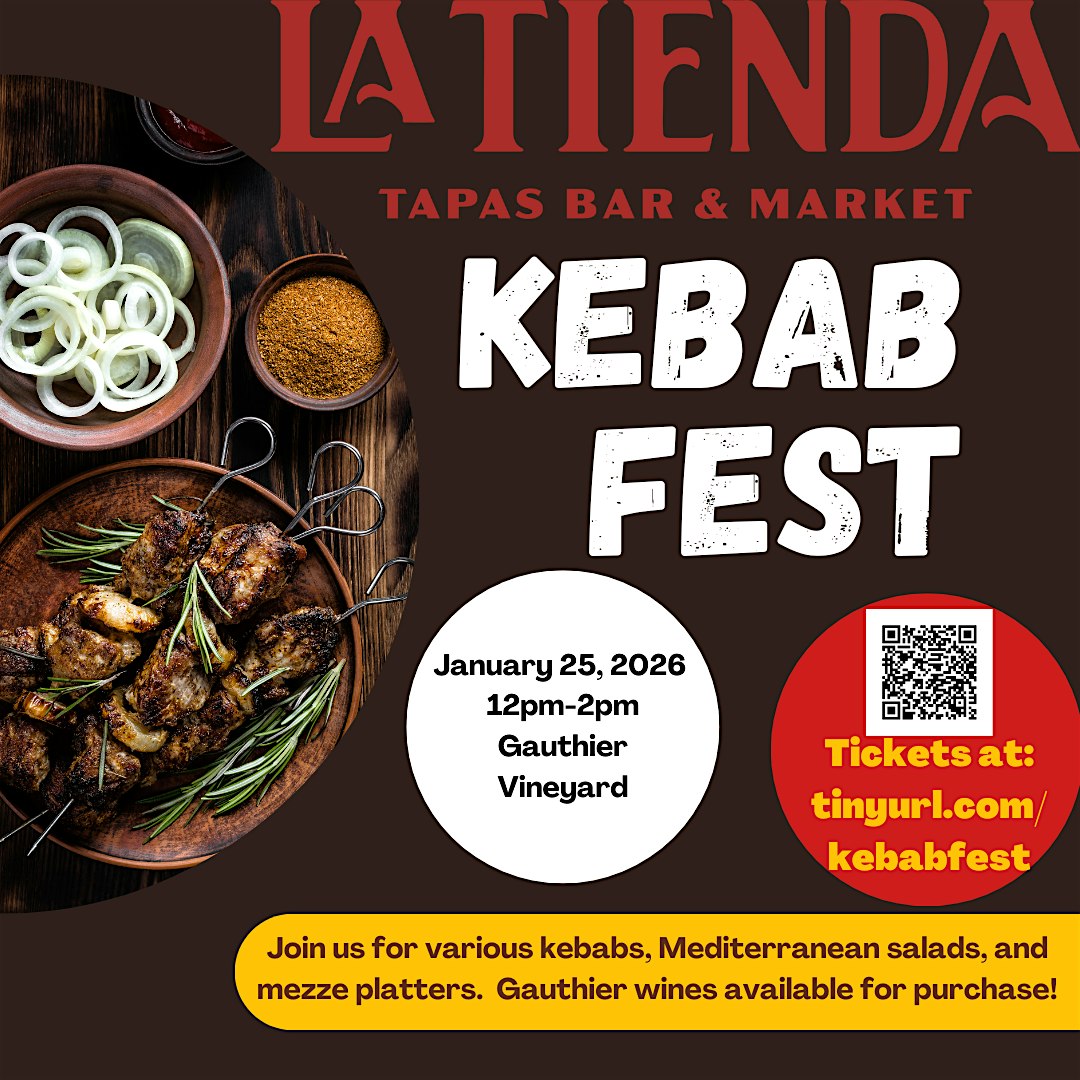 by admin12Feb Kebab Fest at The Event Center – Gauthier Vineyard – Barhamsville, VA Kebab Fest at The Event Center – Gauthier Vineyard – Barhamsville, VA 3 3 people viewed this event. Join us for various kebabs, Mediterranean salads, and mezze platters. Gauthier wines available for purchase! Tickets-RSVP Link Date And Time Sunday, February 22nd, 2026 05:00 PM (PST) Venue The Event Center - Gauthier Vineyard Location 5000 Farmers Drive, Barhamsville, VA 23011 Event Types Festival or FairFood & Drink Event Category Virginia Share With Friends Facebook Twitter Linkedin Xing Pinterest Share This Post: