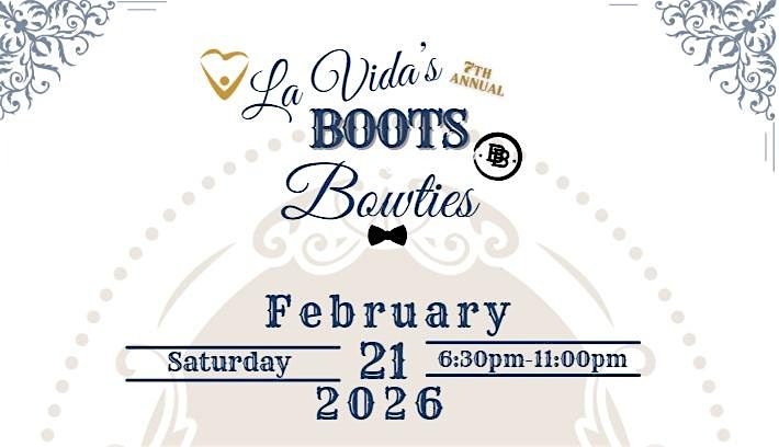 by admin12Feb La Vida’s 7th Annual Boots & Bowties at Horseshoe Saloon & Event Center – Los Lunas, NM La Vida’s 7th Annual Boots & Bowties at Horseshoe Saloon & Event Center – Los Lunas, NM 6 6 people viewed this event. Get ready to kick up your boots and don your best bowtie for La Vida’s 7th Annual celebration – it’s gonna be a night to remember! Tickets-RSVP Link Date And Time Sunday, February 22nd, 2026 01:00 AM (PST) Venue Horseshoe Saloon & Event Center Location 4555 New Mexico 314, Los Lunas, NM 87031 Event Types Charity & CausesParty or Social Gathering Event Category New Mexico Share With Friends Facebook Twitter Linkedin Xing Pinterest Share This Post: