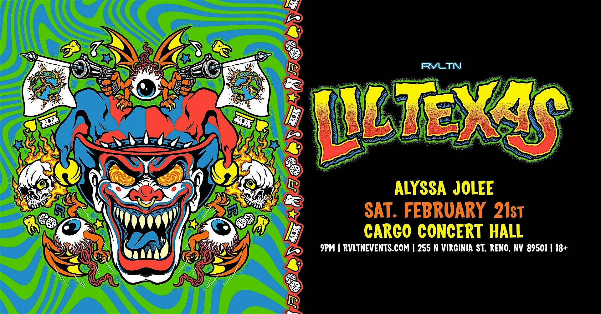 by admin12Feb LIL Texas at Cargo Concert Hall at Cargo : Whitney Peak Hotel – Reno, NV LIL Texas at Cargo Concert Hall at Cargo : Whitney Peak Hotel – Reno, NV 5 5 people viewed this event. RVLTN and Cargo Concert Hall presents LIL Texas! Tickets-RSVP Link Date And Time Sunday, February 22nd, 2026 05:00 AM (PST) Venue Cargo : Whitney Peak Hotel Location 255 North Virginia Street, Reno, NV 89501 Event Types Concert or PerformanceMusic Event Category NevadaReno Share With Friends Facebook Twitter Linkedin Xing Pinterest Share This Post: