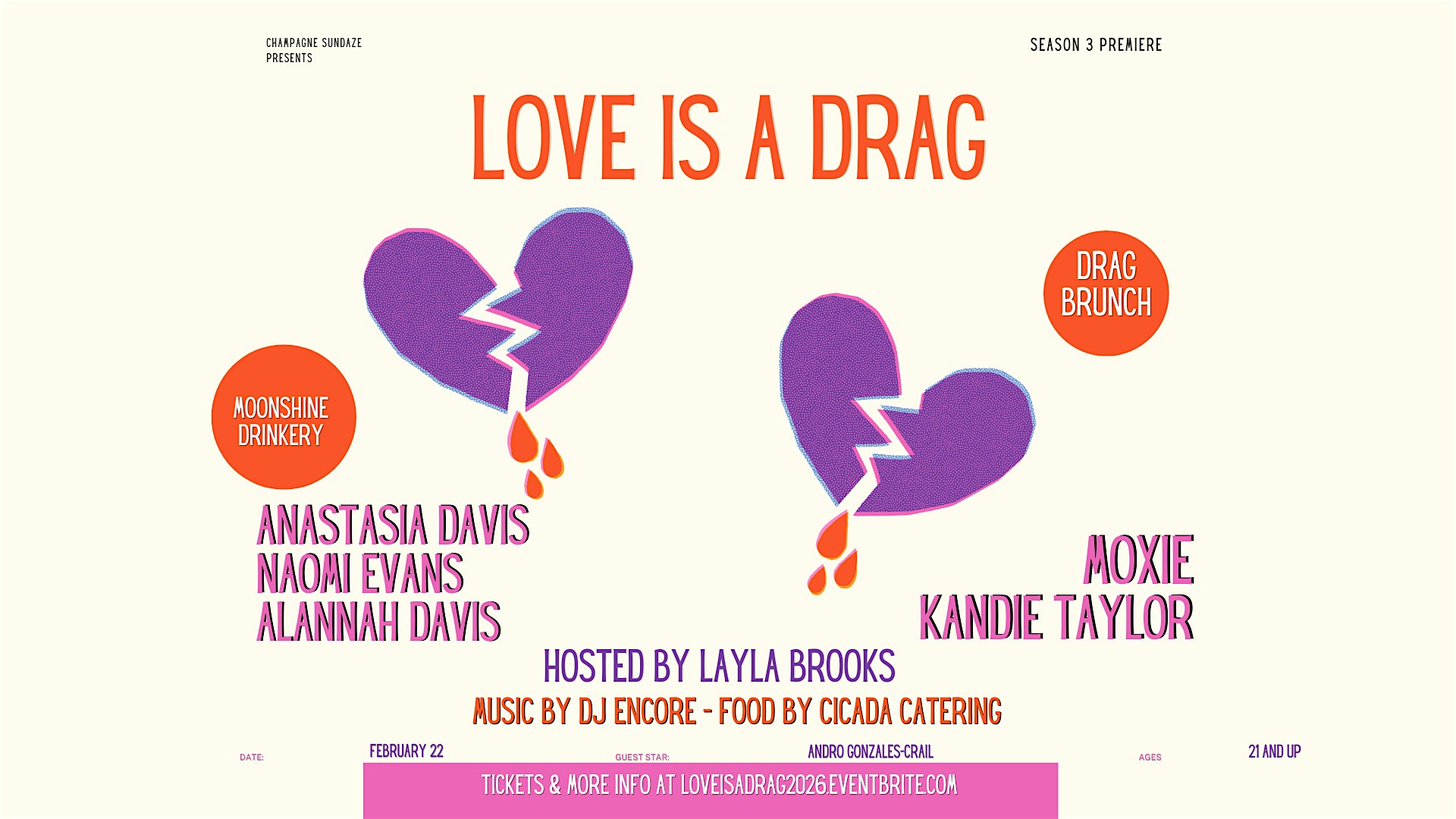 by admin12Feb Love Is A Drag… Brunch! at Moonshine Drinkery – Victoria, TX Love Is A Drag… Brunch! at Moonshine Drinkery – Victoria, TX 7 7 people viewed this event. Screw VD – grab your friends & some cash to tip the queens for a Sunday Funday you don’t want to miss! Tickets-RSVP Link Date And Time Sunday, February 22nd, 2026 06:00 PM (PST) Venue Moonshine Drinkery Location 103 West Santa Rosa Street, Victoria, TX 77901 Event Types Party or Social GatheringPerforming & Visual Arts Event Category Texas Share With Friends Facebook Twitter Linkedin Xing Pinterest Share This Post: