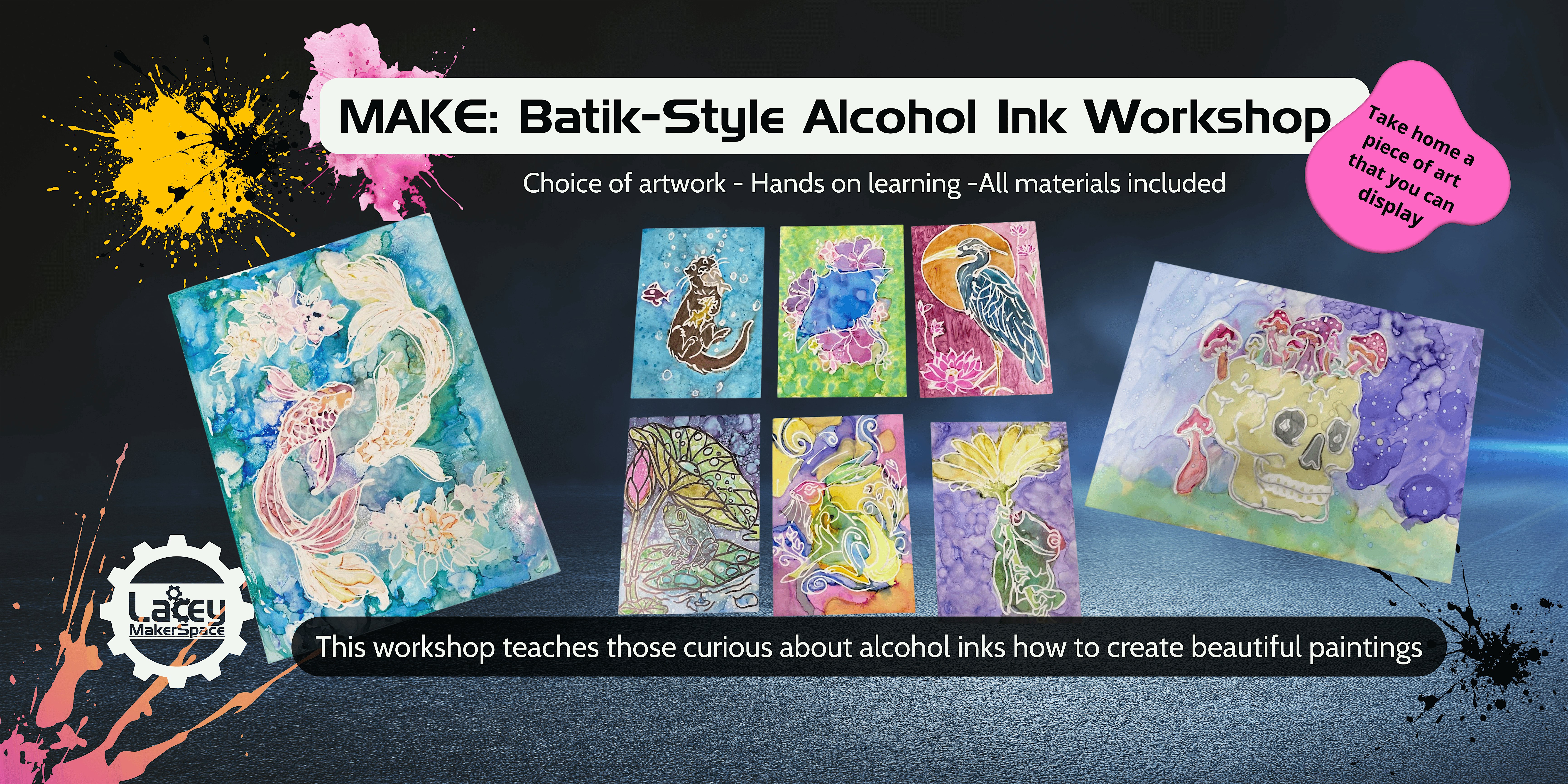 by admin12Feb MAKE: Batik-Style Alcohol Ink Workshop at Lacey MakerSpace – Lacey, WA MAKE: Batik-Style Alcohol Ink Workshop at Lacey MakerSpace – Lacey, WA 5 5 people viewed this event. This workshop is the perfect place to explore! Tickets-RSVP Link Date And Time Sunday, February 22nd, 2026 09:00 PM (PST) Venue Lacey MakerSpace Location Baran Drive Southeast, Lacey, WA 98503 Event Category Washington Share With Friends Facebook Twitter Linkedin Xing Pinterest Share This Post: