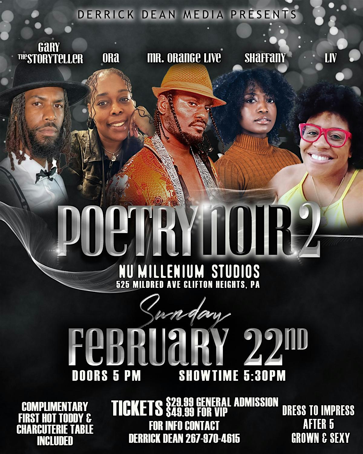 by admin12Feb Poetry Noir 2 at 525 Mildred Ave – Clifton Heights, PA Poetry Noir 2 at 525 Mildred Ave – Clifton Heights, PA 3 3 people viewed this event. The next instalment in Advancing The Mature of The Culture. Tickets-RSVP Link Date And Time Sunday, February 22nd, 2026 10:00 PM (PST) Venue 525 Mildred Ave Location 525 Mildred Avenue, Clifton Heights, PA 19018 Event Types Concert or PerformancePerforming & Visual Arts Event Category Pennsylvania Share With Friends Facebook Twitter Linkedin Xing Pinterest Share This Post: