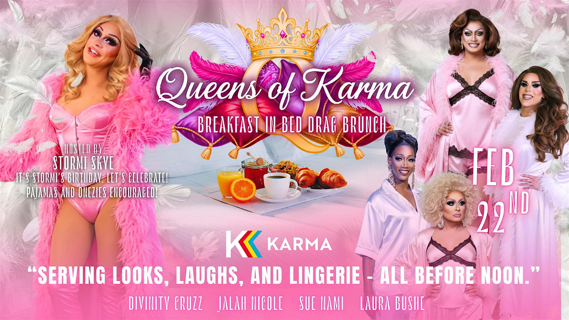 by admin12Feb Queens of Karma Drag Brunch: Breakfast in Bed at Karma Entertainment Complex – Harrisburg, PA Queens of Karma Drag Brunch: Breakfast in Bed at Karma Entertainment Complex – Harrisburg, PA 5 5 people viewed this event. Join us for the most playful, cozy, and fabulous drag brunch of the year — Queens of Karma: Breakfast in Bed! We’re turning brunch Tickets-RSVP Link Date And Time Sunday, February 22nd, 2026 04:00 PM (PST) Venue Karma Entertainment Complex Location 706 North 3rd Street, Harrisburg, PA 17102 Event Types Food & DrinkParty or Social Gathering Event Category Pennsylvania Share With Friends Facebook Twitter Linkedin Xing Pinterest Share This Post: