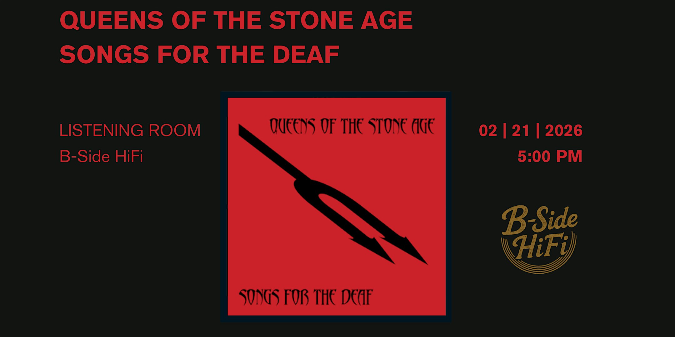 by admin12Feb Queens of the Stone Age – Songs for the Deaf at 71 E Center St 2nd floor – Provo, UT Queens of the Stone Age – Songs for the Deaf at 71 E Center St 2nd floor – Provo, UT 5 5 people viewed this event. “Songs for the Deaf” is QOTSA’s 2002 desert-rock juggernaut with Dave Grohl on drums for their heaviest, most ferocious album. Tickets-RSVP Link Date And Time Sunday, February 22nd, 2026 12:00 AM (PST) Venue 71 E Center St 2nd floor Location 71 East Center Street, Provo, UT 84606 Event Types Concert or PerformanceMusic Event Category Utah Share With Friends Facebook Twitter Linkedin Xing Pinterest Share This Post: