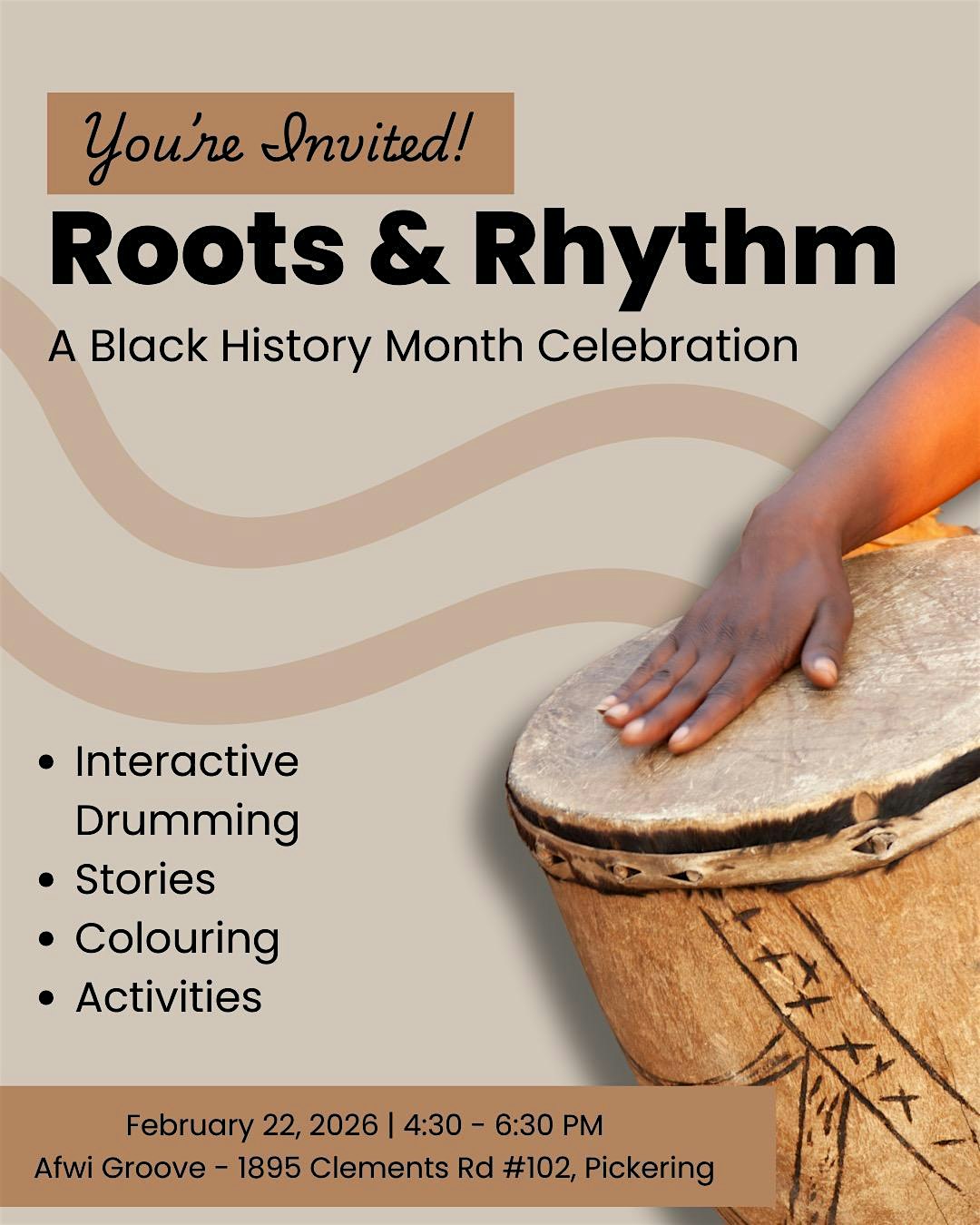 Roots and Rhythm: A Celebration of Black Excellence at Afiwi Arts and Cultural Centre, 1895 Clements Road, Unit 102, Pickering – Pickering, Canada