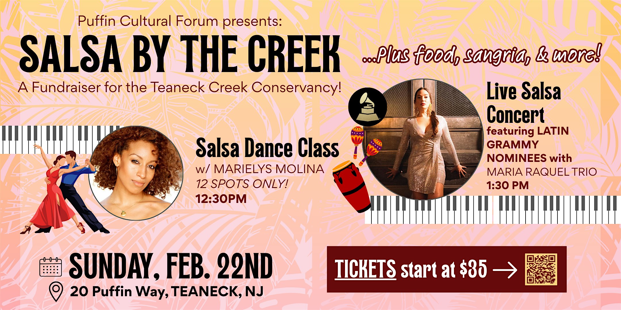 by admin12Feb Salsa by the Creek at Puffin Cultural Forum – Teaneck, NJ Salsa by the Creek at Puffin Cultural Forum – Teaneck, NJ 3 3 people viewed this event. Keep warm this winter with spicy salsa music at Salsa by the Creek – it’s going to be caliente! Tickets-RSVP Link Date And Time Sunday, February 22nd, 2026 06:00 PM (PST) Venue Puffin Cultural Forum Location 20 Puffin Way, Teaneck, NJ 7666 Event Types Concert or PerformancePerforming & Visual Arts Event Category New Jersey Share With Friends Facebook Twitter Linkedin Xing Pinterest Share This Post: