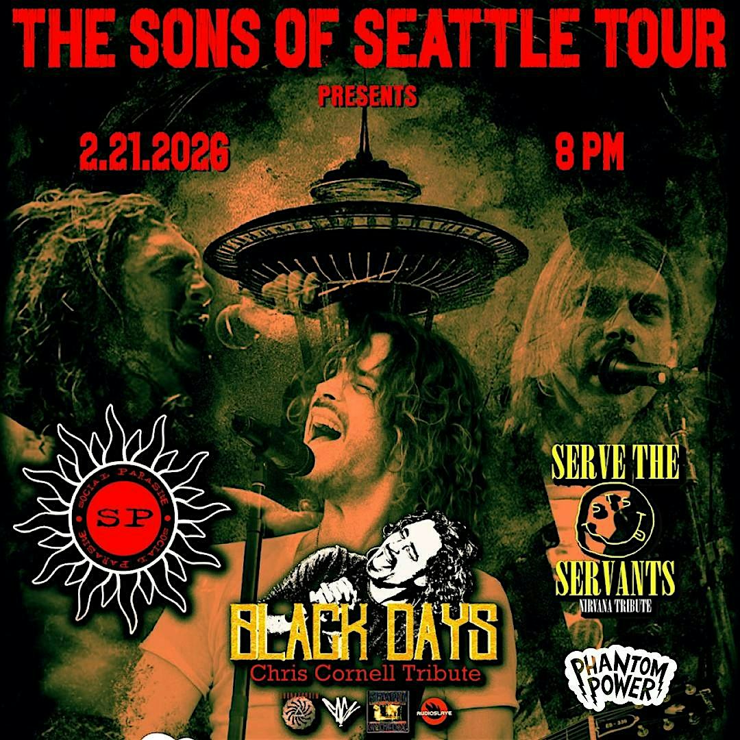 by admin12Feb Sons Of Seattle Tour ft. Black Days, Social Parasite, Serve The Servants at Phantom Power – Millersville, PA Sons Of Seattle Tour ft. Black Days, Social Parasite, Serve The Servants at Phantom Power – Millersville, PA 3 3 people viewed this event. DOORS @ 7PM | $20 ADV | ALL AGES Tickets-RSVP Link Date And Time Sunday, February 22nd, 2026 01:00 AM (PST) Venue Phantom Power Location 121 West Frederick St., Millersville, PA 17551 Event Types Concert or PerformanceMusic Event Category Pennsylvania Share With Friends Facebook Twitter Linkedin Xing Pinterest Share This Post: