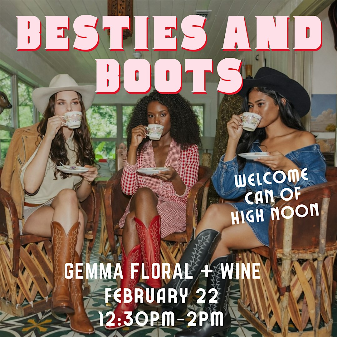 by admin12Feb TEA PARTY – Besties And Boots at Gemma Floral + Wine – Tampa, FL TEA PARTY – Besties And Boots at Gemma Floral + Wine – Tampa, FL 6 6 people viewed this event. Yeehaw Cowgirl – This tea party includes delicious tea, scrumptious treats, and good company. Enjoy a welcome can of High Noon! Tickets-RSVP Link Date And Time Sunday, February 22nd, 2026 05:00 PM (PST) Venue Gemma Floral + Wine Location 4707 North Nebraska Avenue, Tampa, FL 33603 Event Types Food & DrinkParty or Social Gathering Event Category FloridaTampa Share With Friends Facebook Twitter Linkedin Xing Pinterest Share This Post: