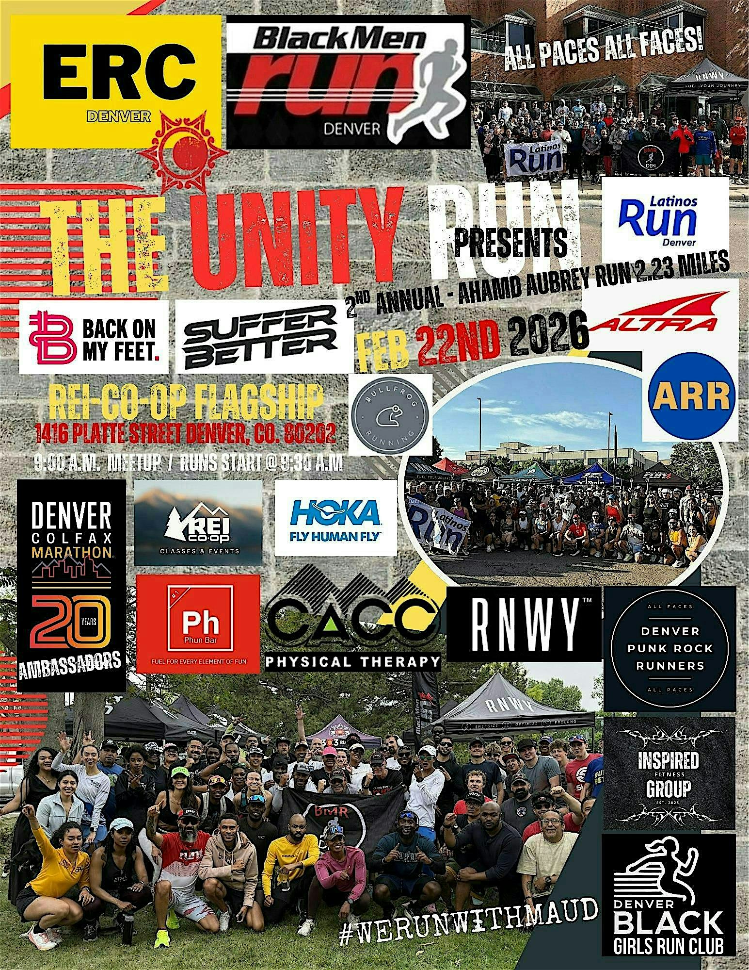 by admin13Feb The 2nd Annual Ahmad Aubrey Unity Run! at 1416 Platte St – Denver, CO The 2nd Annual Ahmad Aubrey Unity Run! at 1416 Platte St – Denver, CO 1 1 people viewed this event. ♂️ The Unity Run Returns! The 2nd Annual Ahmaud Arbery Unity Run Sponsored by: REI Co-op Store Hosted by: Black Men Run Denver Tickets-RSVP Link Date And Time Sunday, February 22nd, 2026 04:00 PM (PST) Venue 1416 Platte St Location 1416 Platte Street, Denver, CO 80202 Event Types Party or Social Gathering Event Category ColoradoDenver Share With Friends Facebook Twitter Linkedin Xing Pinterest Share This Post: