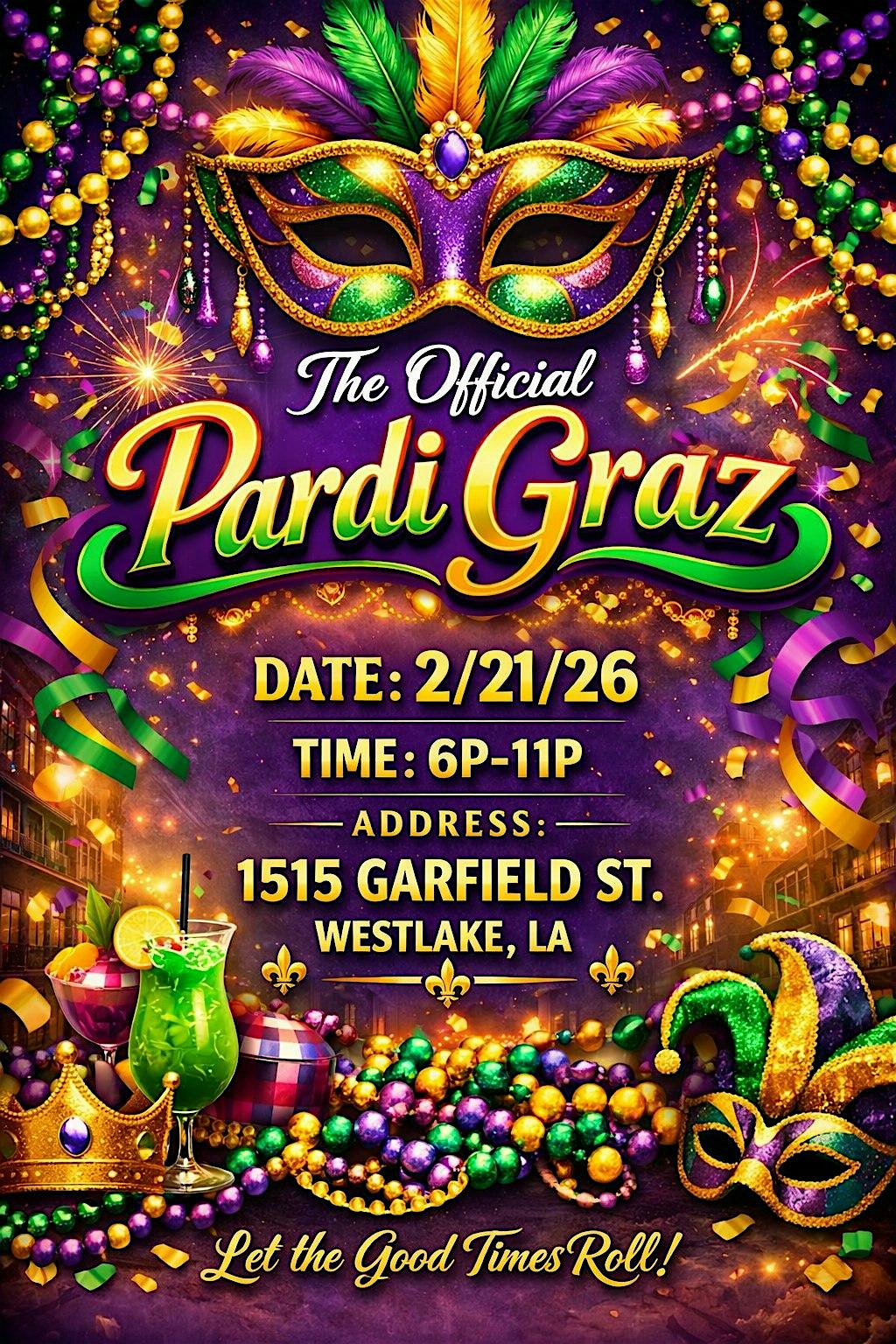 by admin12Feb The Official Pardi Graz at 1515 Garfield St – Westlake, LA The Official Pardi Graz at 1515 Garfield St – Westlake, LA 2 2 people viewed this event. Christmas was for the kids but Mardi Gras for us! Fellas come dress down and ladies come top tier. We can assure you the vybez will be epic! Tickets-RSVP Link Date And Time Sunday, February 22nd, 2026 12:00 AM (PST) Venue 1515 Garfield St Location 1515 Garfield Street, Westlake, LA 70669 Event Types Food & DrinkParty or Social Gathering Event Category Louisiana Share With Friends Facebook Twitter Linkedin Xing Pinterest Share This Post: