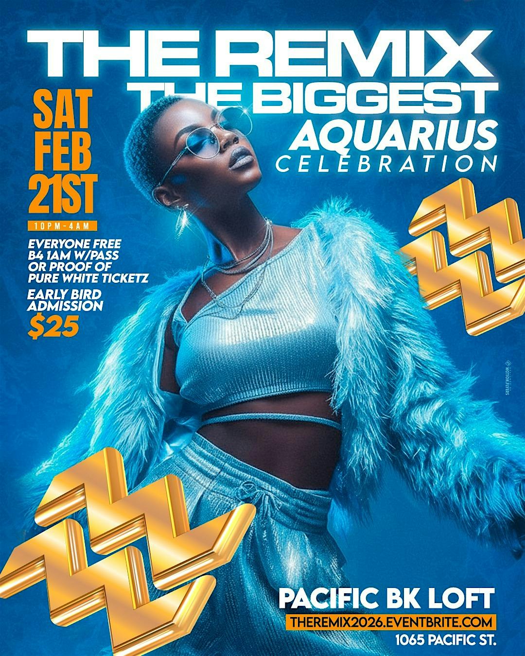 by admin12Feb THE REMIX 2026 The Biggest Aquarius Celebration at Pacific BK Loft – Brooklyn, NY THE REMIX 2026 The Biggest Aquarius Celebration at Pacific BK Loft – Brooklyn, NY 6 6 people viewed this event. Get ready to vibe and celebrate all things Aquarius at THE REMIX 2026—biggest party of the year, in person! Tickets-RSVP Link Date And Time Sunday, February 22nd, 2026 03:00 AM (PST) Venue Pacific BK Loft Location 1065 Pacific St, Brooklyn, NY 11208 Event Types Community & CultureParty or Social Gathering Event Category New York Share With Friends Facebook Twitter Linkedin Xing Pinterest Share This Post: