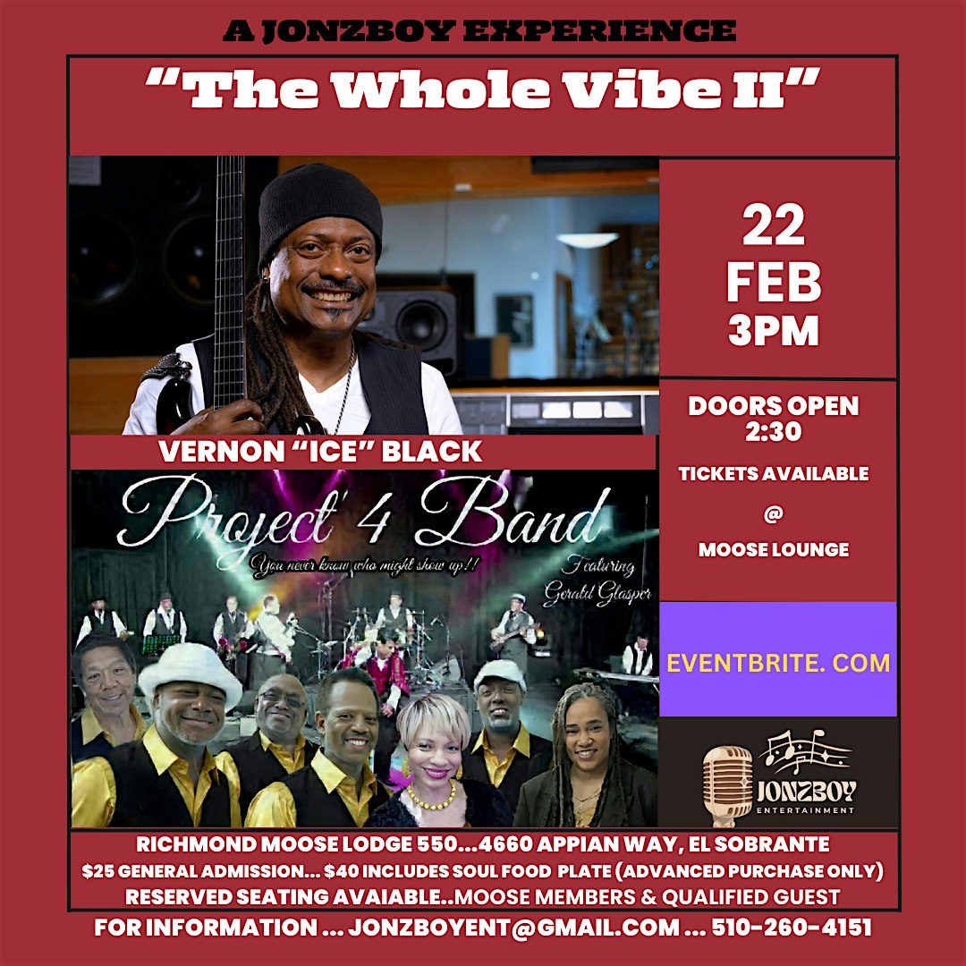 by admin13Feb “The Whole Vibe” 2 at Moose lodge Richmond 550 – El Sobrante, CA “The Whole Vibe” 2 at Moose lodge Richmond 550 – El Sobrante, CA 2 2 people viewed this event. Join us for “The Whole Vibe” – a chill gathering filled with good music, positive energy, and great company! Tickets-RSVP Link Date And Time Sunday, February 22nd, 2026 11:00 PM (PST) Venue Moose lodge Richmond 550 Location 4660 Appian Way, El Sobrante, CA 94803 Event Types Community & CultureConcert or Performance Event Category CaliforniaOakland Share With Friends Facebook Twitter Linkedin Xing Pinterest Share This Post: