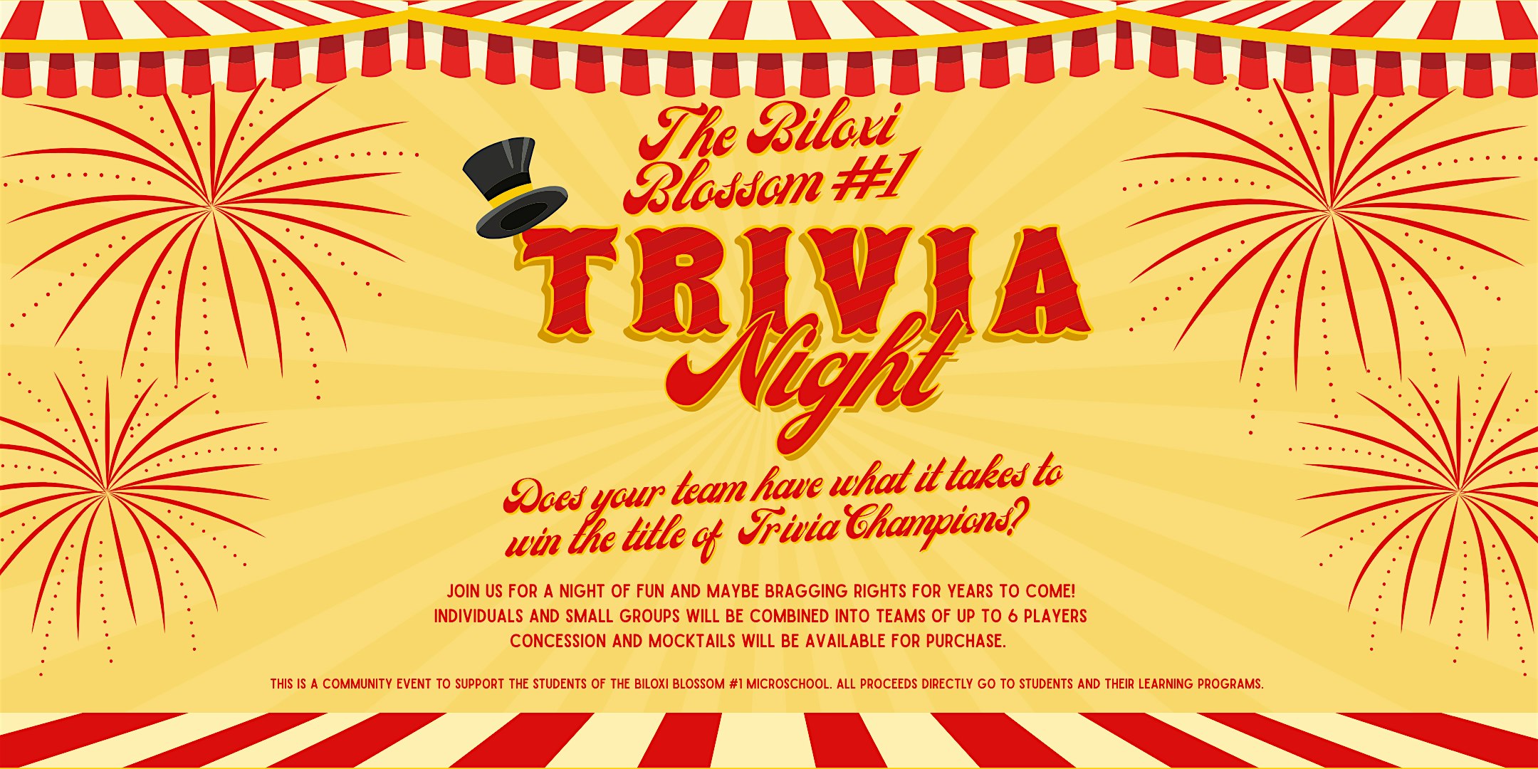 by admin12Feb Trivia Night at the Biloxi Blossom #1 at The Biloxi Blossom #1 – Biloxi, MS Trivia Night at the Biloxi Blossom #1 at The Biloxi Blossom #1 – Biloxi, MS 3 3 people viewed this event. Join us at Biloxi Blossom #1 for a fun-filled Trivia Night – bring your friends and test your knowledge for a great cause! Tickets-RSVP Link Date And Time Sunday, February 22nd, 2026 12:00 AM (PST) Venue The Biloxi Blossom #1 Location 2337 Pass Road, Biloxi, MS 39531 Event Types Community & Culture Event Category Mississippi Share With Friends Facebook Twitter Linkedin Xing Pinterest Share This Post: