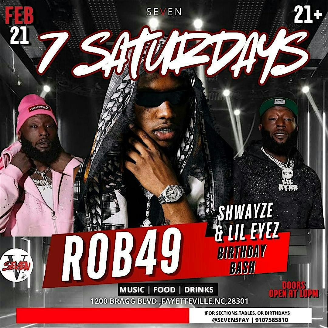 by admin12Feb Twins Birthday Bash W/ Rob49 @ Seven5 at 1200 Bragg Blvd – Fayetteville, NC Twins Birthday Bash W/ Rob49 @ Seven5 at 1200 Bragg Blvd – Fayetteville, NC 5 5 people viewed this event. This even will sellout for sections and table text 9107585810 Tickets-RSVP Link Date And Time Sunday, February 22nd, 2026 03:00 AM (PST) Venue 1200 Bragg Blvd Location 1200 Bragg Boulevard, Fayetteville, NC 28301 Event Types MusicParty or Social Gathering Event Category North Carolina Share With Friends Facebook Twitter Linkedin Xing Pinterest Share This Post: