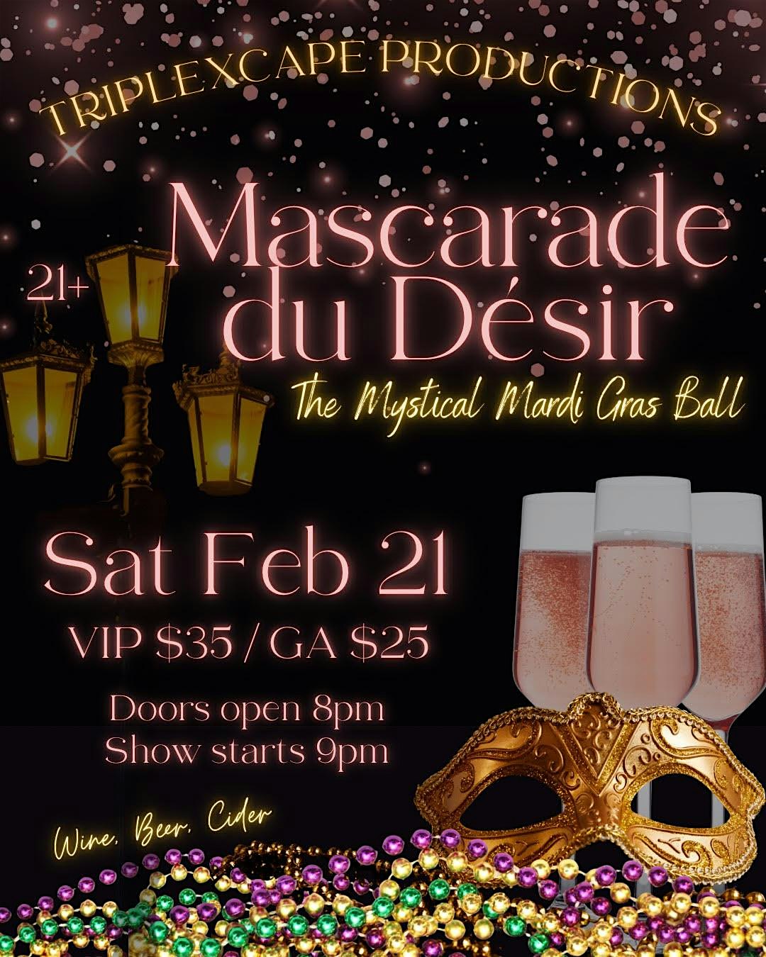 by admin13Feb XXXCAPE PRESENTS… Masquerade du Désir at Xcape Dance Academy – Eugene, OR XXXCAPE PRESENTS… Masquerade du Désir at Xcape Dance Academy – Eugene, OR 6 6 people viewed this event. The Mystical Mardi Gras Ball Tickets-RSVP Link Date And Time Sunday, February 22nd, 2026 05:00 AM (PST) Venue Xcape Dance Academy Location 1416 West 7th Avenue, Eugene, OR 97402 Event Types OtherPerforming & Visual Arts Event Category EugeneOregon Share With Friends Facebook Twitter Linkedin Xing Pinterest Share This Post:
