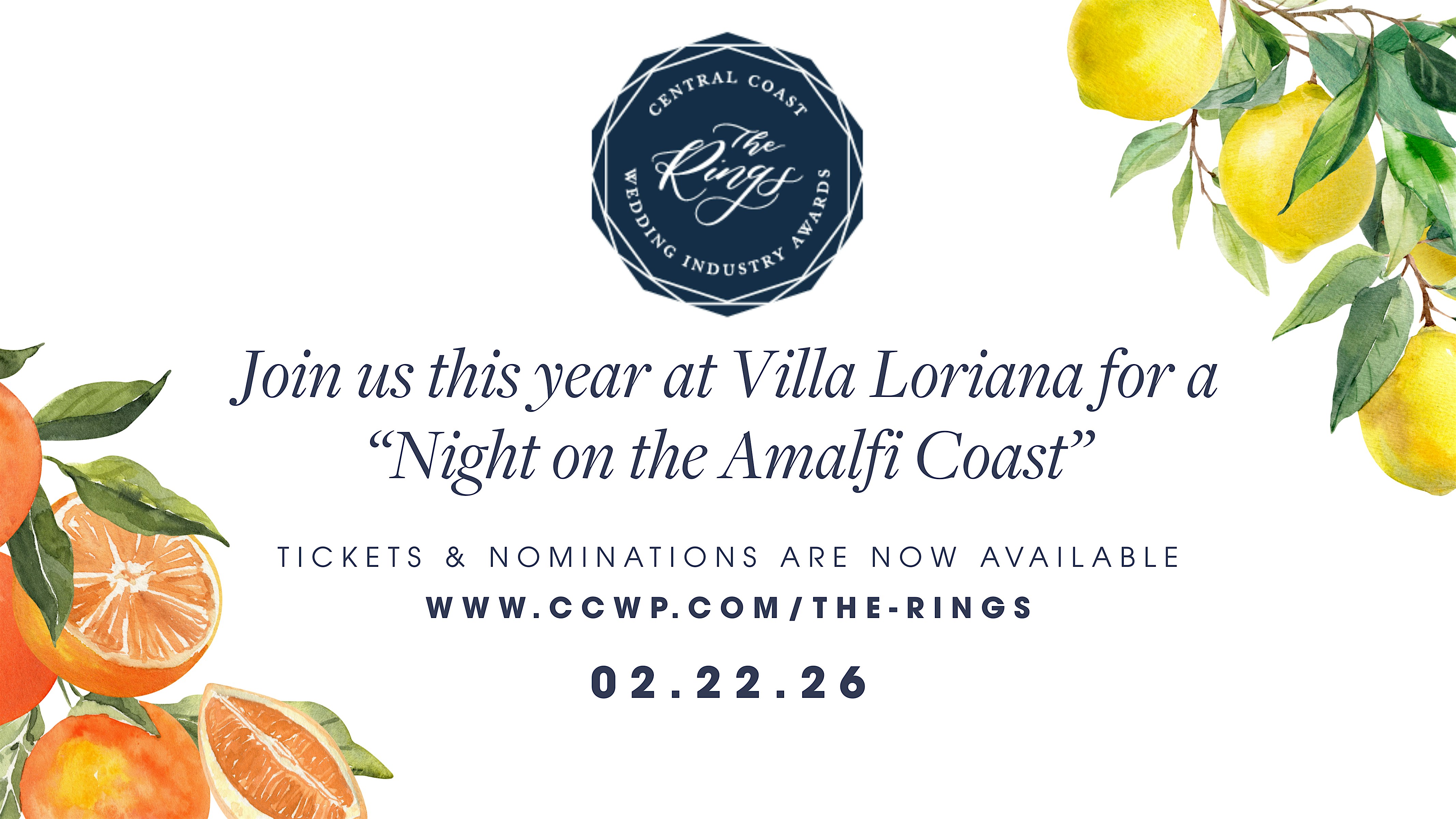 by admin12Feb CCWIA: The Rings 2026 at Villa Loriana – San Luis Obispo, CA CCWIA: The Rings 2026 at Villa Loriana – San Luis Obispo, CA 1 1 people viewed this event. Black-tie awards dinner celebrating Central Coast wedding excellence. Live music, dining, and an unforgettable night at Villa Loriana. Tickets-RSVP Link Date And Time Monday, February 23rd, 2026 01:00 AM (PST) Venue Villa Loriana Location 500 West Ormonde Road, San Luis Obispo, CA 93401 Event Types Performing & Visual Arts Event Category California Share With Friends Facebook Twitter Linkedin Xing Pinterest Share This Post: