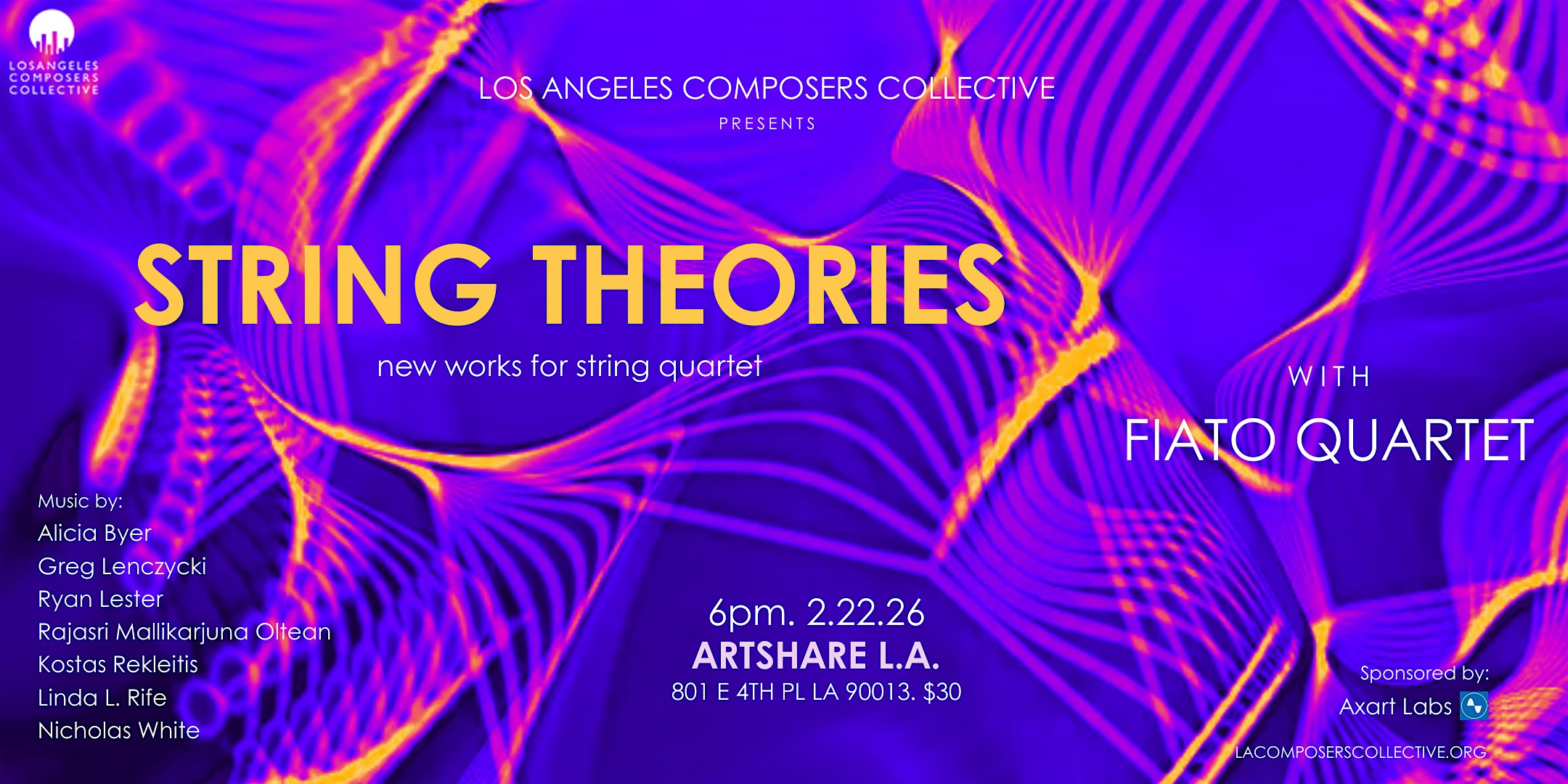 by admin12Feb String Theories at Art Share L.A. – Los Angeles, CA String Theories at Art Share L.A. – Los Angeles, CA 5 5 people viewed this event. The L.A. Composers Collective is back! Join us for our reboot concert featuring new works for string quartet performed by the Fiato Quartet Tickets-RSVP Link Date And Time Monday, February 23rd, 2026 02:00 AM (PST) Venue Art Share L.A. Location 801 East 4th Place, Los Angeles, CA 90013 Event Types Concert or PerformanceMusic Event Category CaliforniaLos Angeles Share With Friends Facebook Twitter Linkedin Xing Pinterest Share This Post: