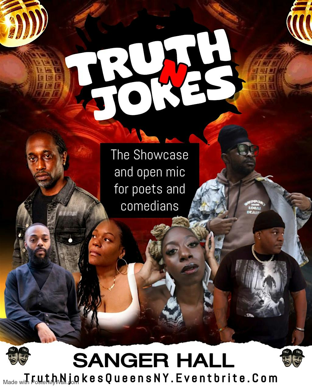 by admin12Feb TRUTH N JOKES: A showcase and open mic for poets and comedians at Sanger Hall – Queens, NY TRUTH N JOKES: A showcase and open mic for poets and comedians at Sanger Hall – Queens, NY 2 2 people viewed this event. Truth N Jokes is an open mic experience where raw honesty meets laughter. This is the stage for poets and comedians. Tickets-RSVP Link Date And Time Monday, February 23rd, 2026 12:00 AM (PST) Venue Sanger Hall Location 48-20 Skillman Avenue, Queens, NY 11104 Event Types Concert or PerformancePerforming & Visual Arts Event Category New YorkNew York City Share With Friends Facebook Twitter Linkedin Xing Pinterest Share This Post: