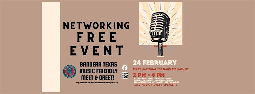 by admin13Feb Bandera Texas Music Friendly Networking Event at The First National Ice Haus – Bandera, TX Bandera Texas Music Friendly Networking Event at The First National Ice Haus – Bandera, TX 1 1 people viewed this event. Calling All Bandera Musicians, Singer Songwriters, Music Venue owners & Music educators!!! You don’t want to miss this event! Tickets-RSVP Link Date And Time Tuesday, February 24th, 2026 08:00 PM (PST) Venue The First National Ice Haus Location 317 Main Street, Bandera, TX 78003 Event Types Music Event Category Texas Share With Friends Facebook Twitter Linkedin Xing Pinterest Share This Post: