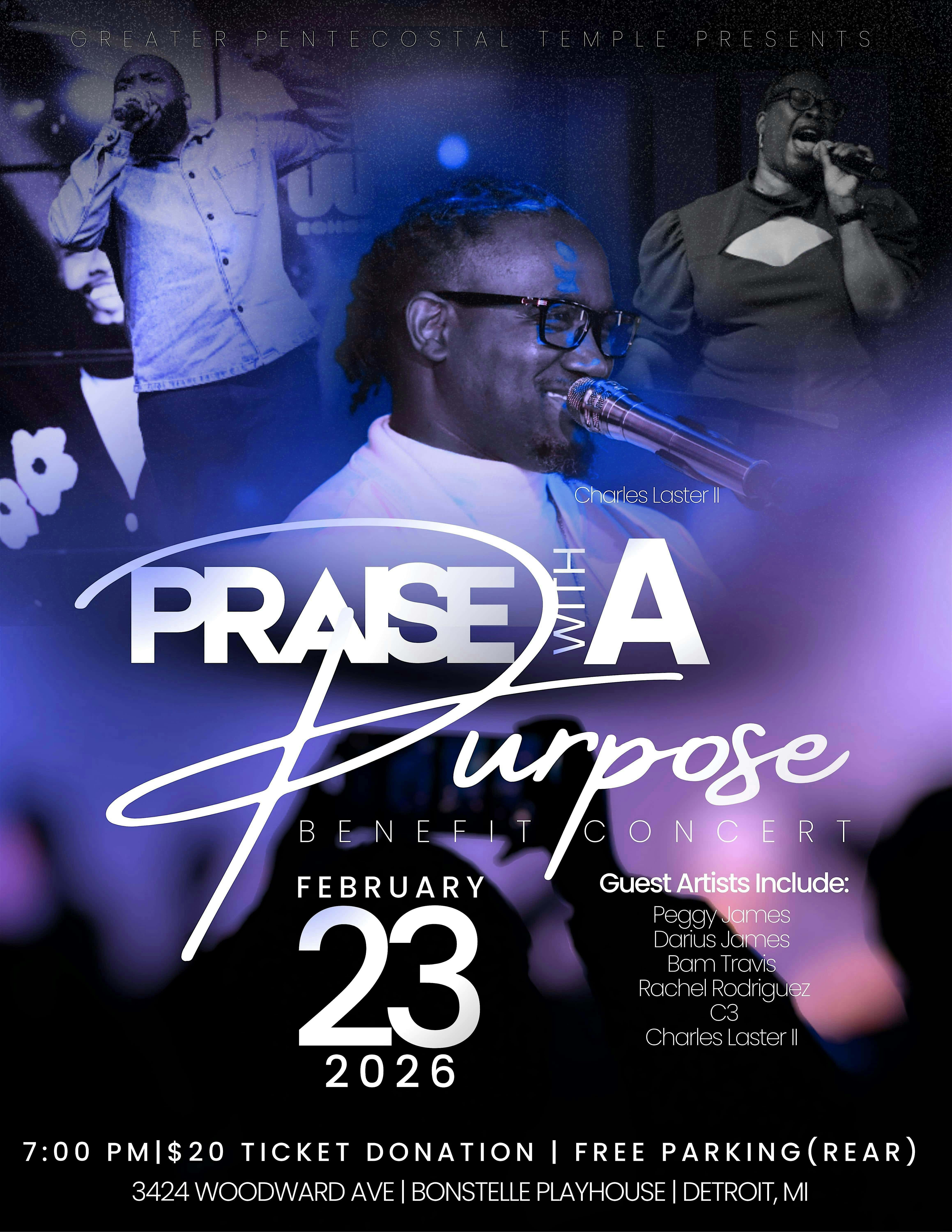 by admin14Feb Praise With A Purpose at 3424 Woodward Ave – Detroit, MI Praise With A Purpose at 3424 Woodward Ave – Detroit, MI 4 4 people viewed this event. One night. One purpose. Live worship experience to support our mission and serve our community. Tickets-RSVP Link Date And Time Tuesday, February 24th, 2026 12:00 AM (PST) Venue 3424 Woodward Ave Location 3424 Woodward Avenue, Detroit, MI 48201 Event Types Concert or Performance Event Category DetroitMichigan Share With Friends Facebook Twitter Linkedin Xing Pinterest Share This Post: