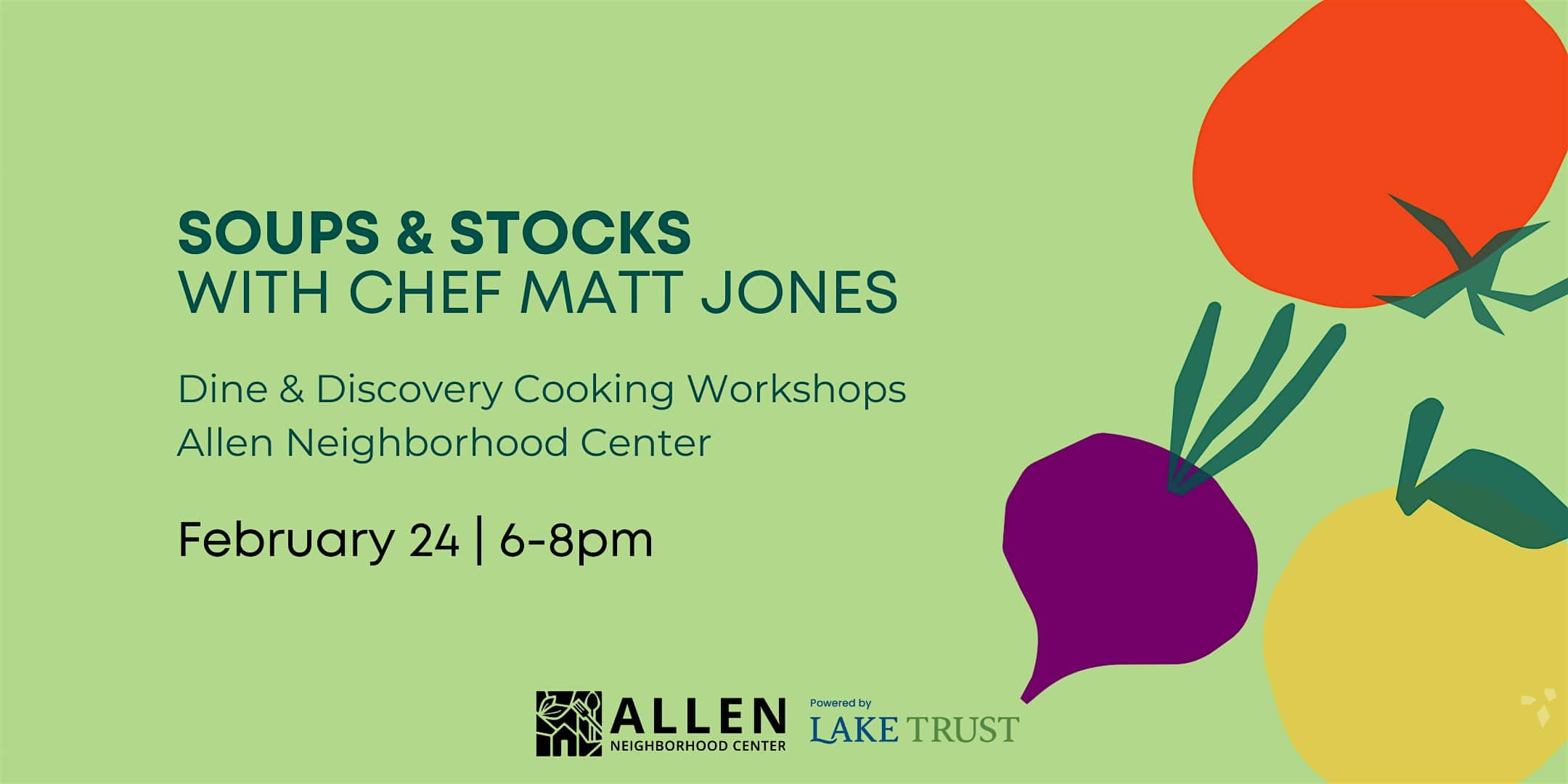by admin14Feb Soups & Stocks with Chef Matt Jones at Allen Neighborhood Center – Lansing, MI Soups & Stocks with Chef Matt Jones at Allen Neighborhood Center – Lansing, MI 2 2 people viewed this event. Join your neighbors in the Maker Kitchen to learn and dine together in these workshops with ANC Makers and local chefs! Tickets-RSVP Link Date And Time Tuesday, February 24th, 2026 11:00 PM (PST) Venue Allen Neighborhood Center Location 1611 East Kalamazoo Street, Lansing, MI 48912 Event Types Food & Drink Event Category Michigan Share With Friends Facebook Twitter Linkedin Xing Pinterest Share This Post: