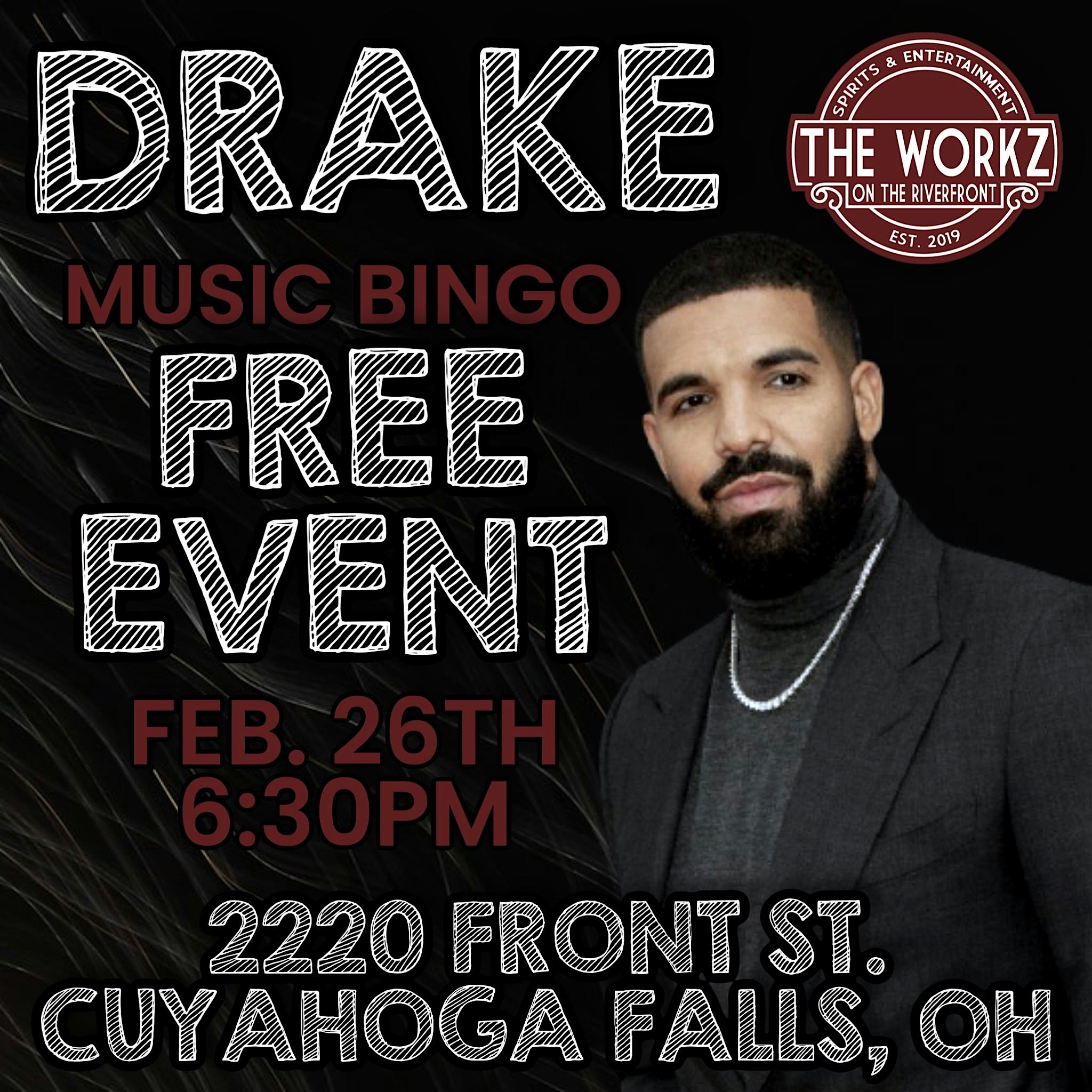 by admin13Feb DRAKE-MUSIC BINGO at 2220 Front St – Cuyahoga Falls, OH DRAKE-MUSIC BINGO at 2220 Front St – Cuyahoga Falls, OH 1 1 people viewed this event. Get ready to vibe and shout out your fave Drake jams in a fun, live bingo showdown! Tickets-RSVP Link Date And Time Wednesday, February 25th, 2026 11:00 PM (PST) Venue 2220 Front St Location 2220 Front Street, Cuyahoga Falls, OH 44221 Event Types Music Event Category AkronOhio Share With Friends Facebook Twitter Linkedin Xing Pinterest Share This Post: