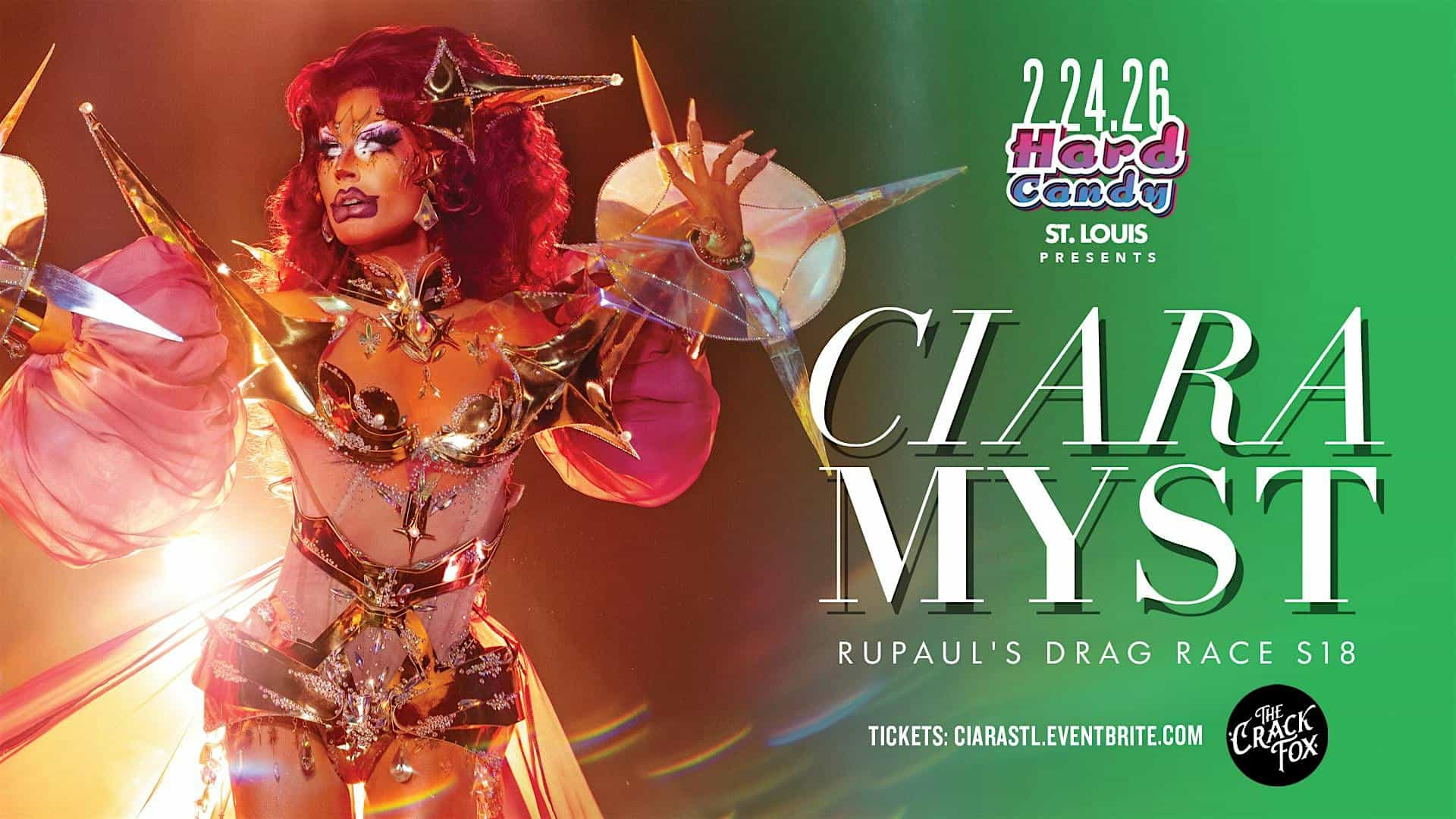 by admin14Feb Hard Candy St Louis with Ciara Myst at The Crack Fox – St. Louis, MO Hard Candy St Louis with Ciara Myst at The Crack Fox – St. Louis, MO 1 1 people viewed this event. S18 shapeshifter Ciara Myst comes to STL! Tickets-RSVP Link Date And Time Wednesday, February 25th, 2026 01:00 AM (PST) Venue The Crack Fox Location 1114 Olive Street, St. Louis, MO 63101 Event Types Concert or PerformancePerforming & Visual Arts Event Category MissouriSt. Louis Share With Friends Facebook Twitter Linkedin Xing Pinterest Share This Post: