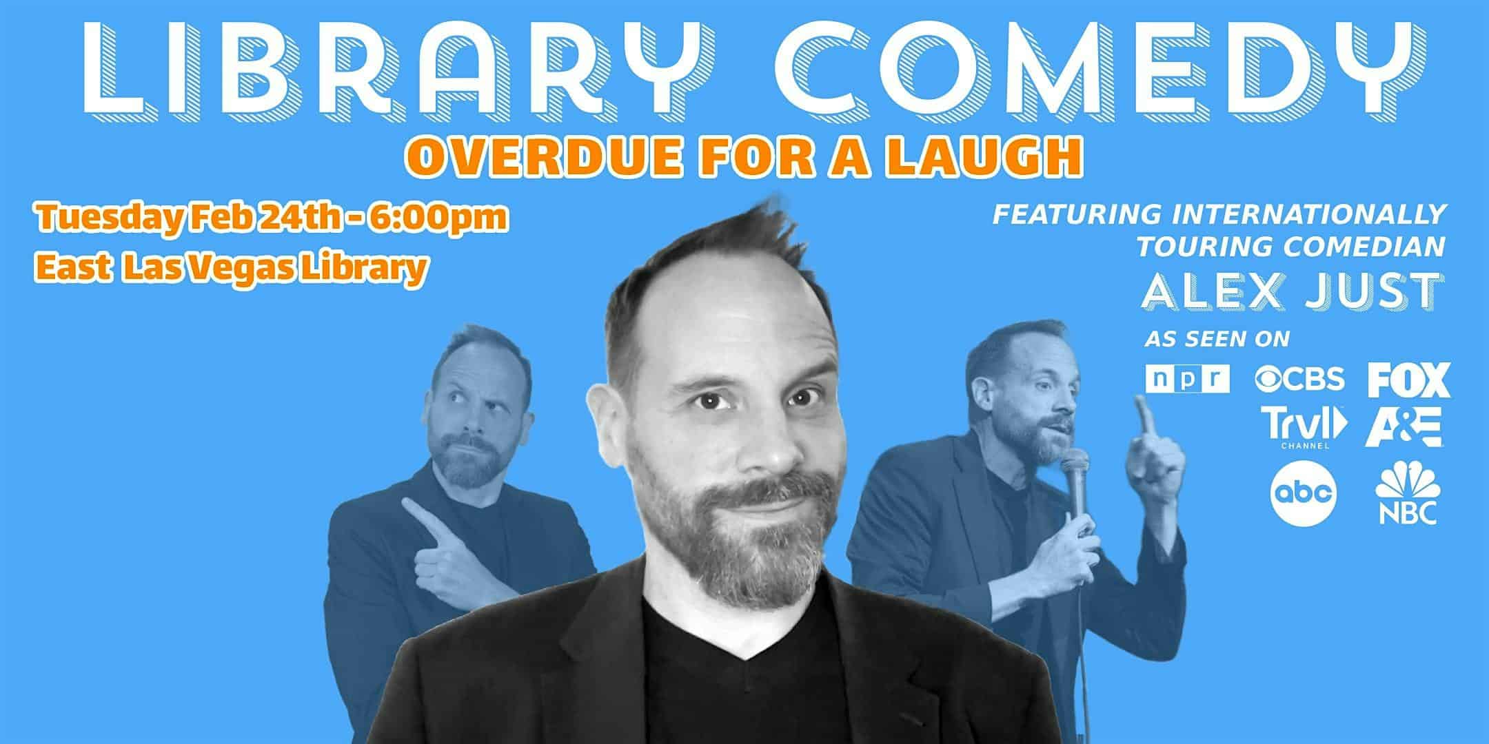 by admin14Feb Library Comedy: Overdue for a Laugh at East Las Vegas Library – Las Vegas, NV Library Comedy: Overdue for a Laugh at East Las Vegas Library – Las Vegas, NV 2 2 people viewed this event. The one time you won’t be shushed at the library – live stand-up comedy! Tickets-RSVP Link Date And Time Wednesday, February 25th, 2026 02:00 AM (PST) Venue East Las Vegas Library Location 2851 East Bonanza Road, Las Vegas, NV 89101 Event Types Concert or PerformancePerforming & Visual Arts Event Category Las VegasNevada Share With Friends Facebook Twitter Linkedin Xing Pinterest Share This Post: