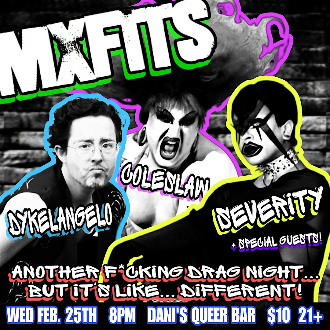 by admin22Feb MXFITS: DRAG AT DANI’S 2.25 at Dani’s Queer Bar – Boston, MA MXFITS: DRAG AT DANI’S 2.25 at Dani’s Queer Bar – Boston, MA 1 1 people viewed this event. The queerdos are bringing their drag shenanigans back to Dani’s Boston. Severity, Coleslaw, & Dykleangelo are the MXFITS. Come laugh w us! Tickets-RSVP Link Date And Time Wednesday, February 25th, 2026 08:00 PM (PST) Venue Dani’s Queer Bar Location 909 Boylston Street, Boston, MA 2115 Event Types Party or Social GatheringPerforming & Visual Arts Event Category BostonMassachusetts Share With Friends Facebook Twitter Linkedin Xing Pinterest Share This Post: