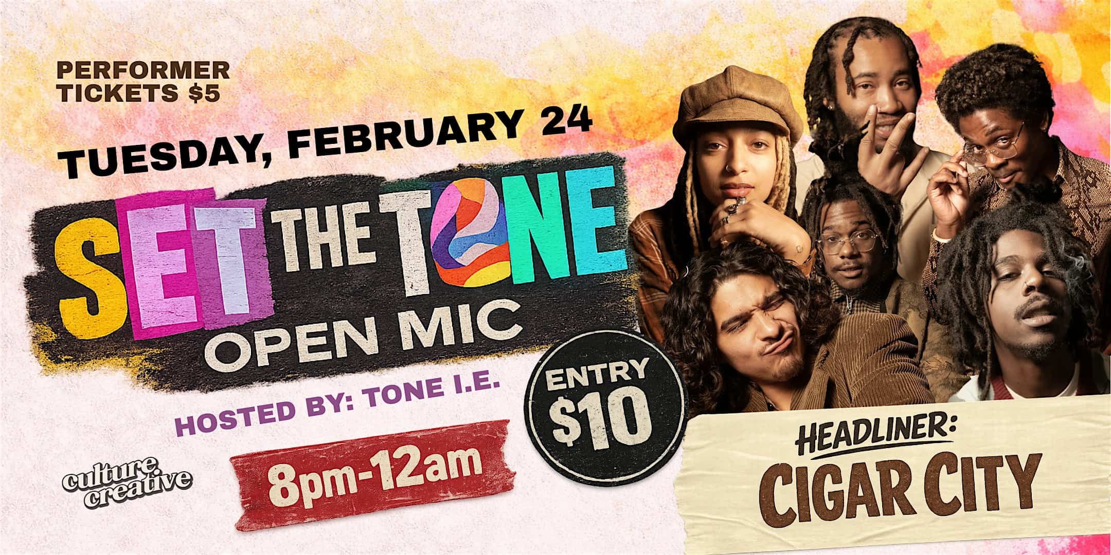 by admin14Feb SET THE TONE: Open Mic Night at Culture Creative – St. Petersburg, FL SET THE TONE: Open Mic Night at Culture Creative – St. Petersburg, FL 2 2 people viewed this event. Join Tone I.E. for Open Mic Night at Culture Creative — a dope night of raw talent, vibes, and creative expression! Tickets-RSVP Link Date And Time Wednesday, February 25th, 2026 01:00 AM (PST) Venue Culture Creative Location 2108 34th Street South, St. Petersburg, FL 33711 Event Types Concert or PerformancePerforming & Visual Arts Event Category Florida Share With Friends Facebook Twitter Linkedin Xing Pinterest Share This Post:
