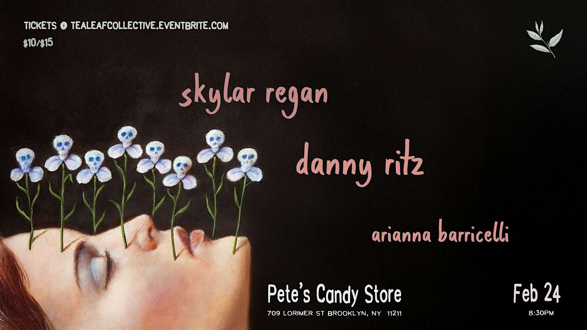 by admin14Feb Skylar Regan / Danny Ritz / Arianna Barricelli at Pete’s Candy Store – Brooklyn, NY Skylar Regan / Danny Ritz / Arianna Barricelli at Pete’s Candy Store – Brooklyn, NY 2 2 people viewed this event. Skylar Regan / Danny Ritz / Arianna Barricelli at Pete’s Candy Store on February 24th. Tickets-RSVP Link Date And Time Wednesday, February 25th, 2026 01:00 AM (PST) Venue Pete's Candy Store Location 709 Lorimer Street, Brooklyn, NY 11211 Event Types Concert or PerformancePerforming & Visual Arts Event Category New York Share With Friends Facebook Twitter Linkedin Xing Pinterest Share This Post: