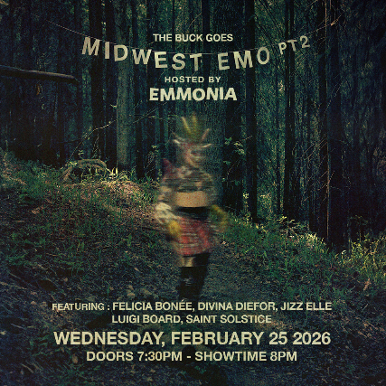 The Buck Goes Midwest Emo Hosted by Emmonia Featuring: Felicia Bone Divina DieforJizz ElleLuigi BoardSaint Solstice