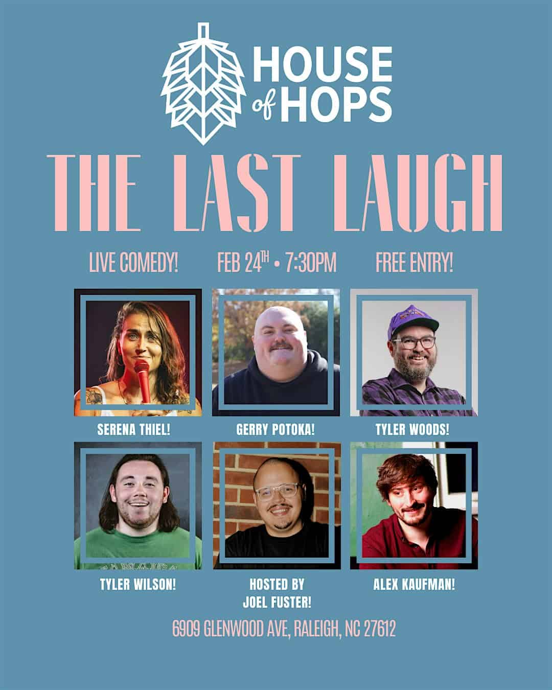 by admin14Feb The Last Laugh @ House of Hops at House of Hops – Raleigh, NC The Last Laugh @ House of Hops at House of Hops – Raleigh, NC 2 2 people viewed this event. Get ready to laugh till you drop at The Last Laugh @ House of Hops—comedy, brews, and good vibes! Tickets-RSVP Link Date And Time Wednesday, February 25th, 2026 12:00 AM (PST) Venue House of Hops Location 6906 Glenwood ave, Raleigh, NC 27612 Event Types Concert or PerformancePerforming & Visual Arts Event Category North CarolinaRaleigh Share With Friends Facebook Twitter Linkedin Xing Pinterest Share This Post: