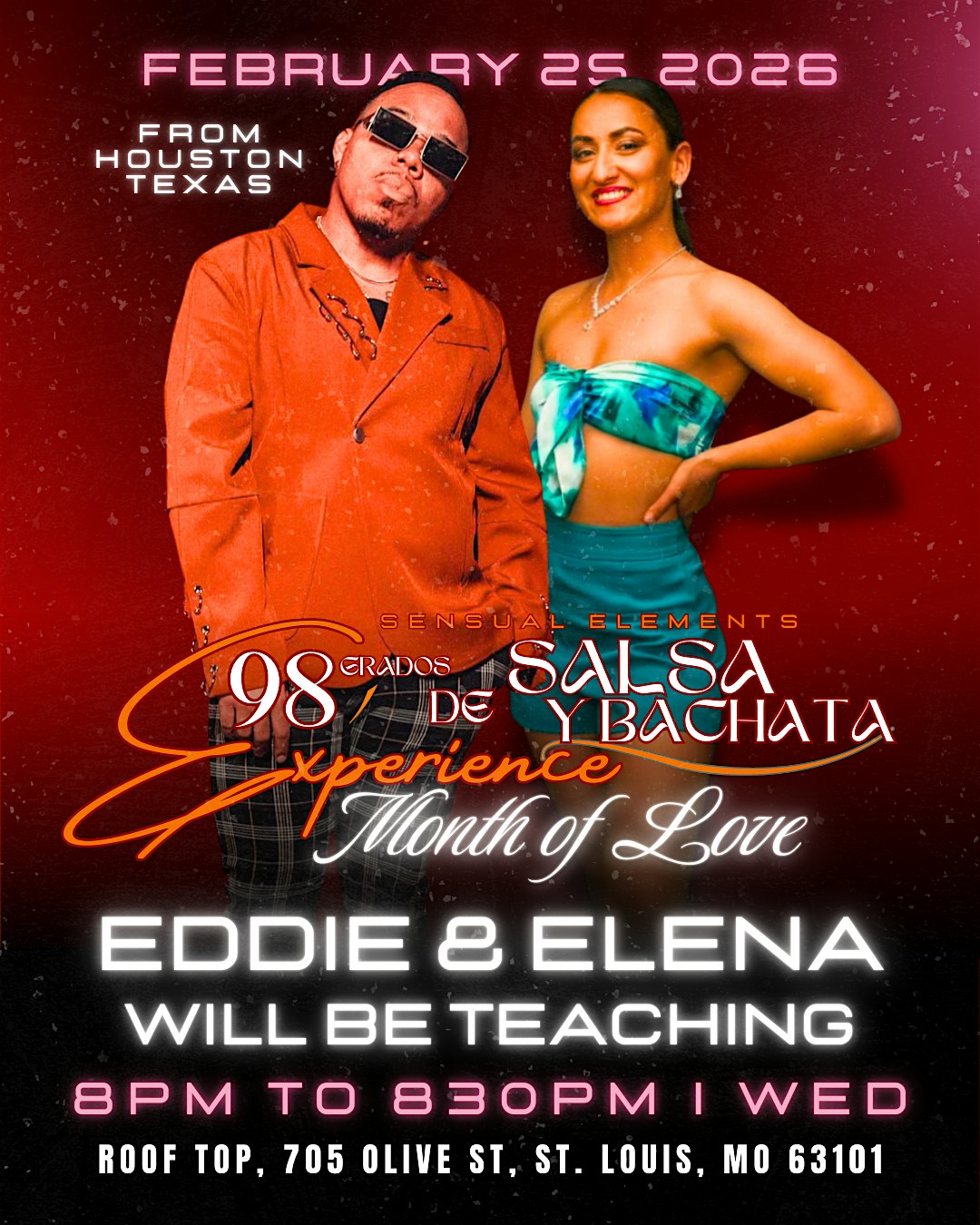 by admin13Feb 98 Grados de Salsa y Bachata Month of Love Edition at Hotel Saint Louis, Autograph Collection – St. Louis, MO 98 Grados de Salsa y Bachata Month of Love Edition at Hotel Saint Louis, Autograph Collection – St. Louis, MO 2 2 people viewed this event. Get ready to heat up the dance floor with the hottest salsa and bachata tunes at 98 Grados – Month of Love Edition! Tickets-RSVP Link Date And Time Thursday, February 26th, 2026 02:00 AM (PST) Venue Hotel Saint Louis, Autograph Collection Location 705 Olive Street, St. Louis, MO 63101 Event Types Concert or PerformanceMusic Event Category MissouriSt. Louis Share With Friends Facebook Twitter Linkedin Xing Pinterest Share This Post: