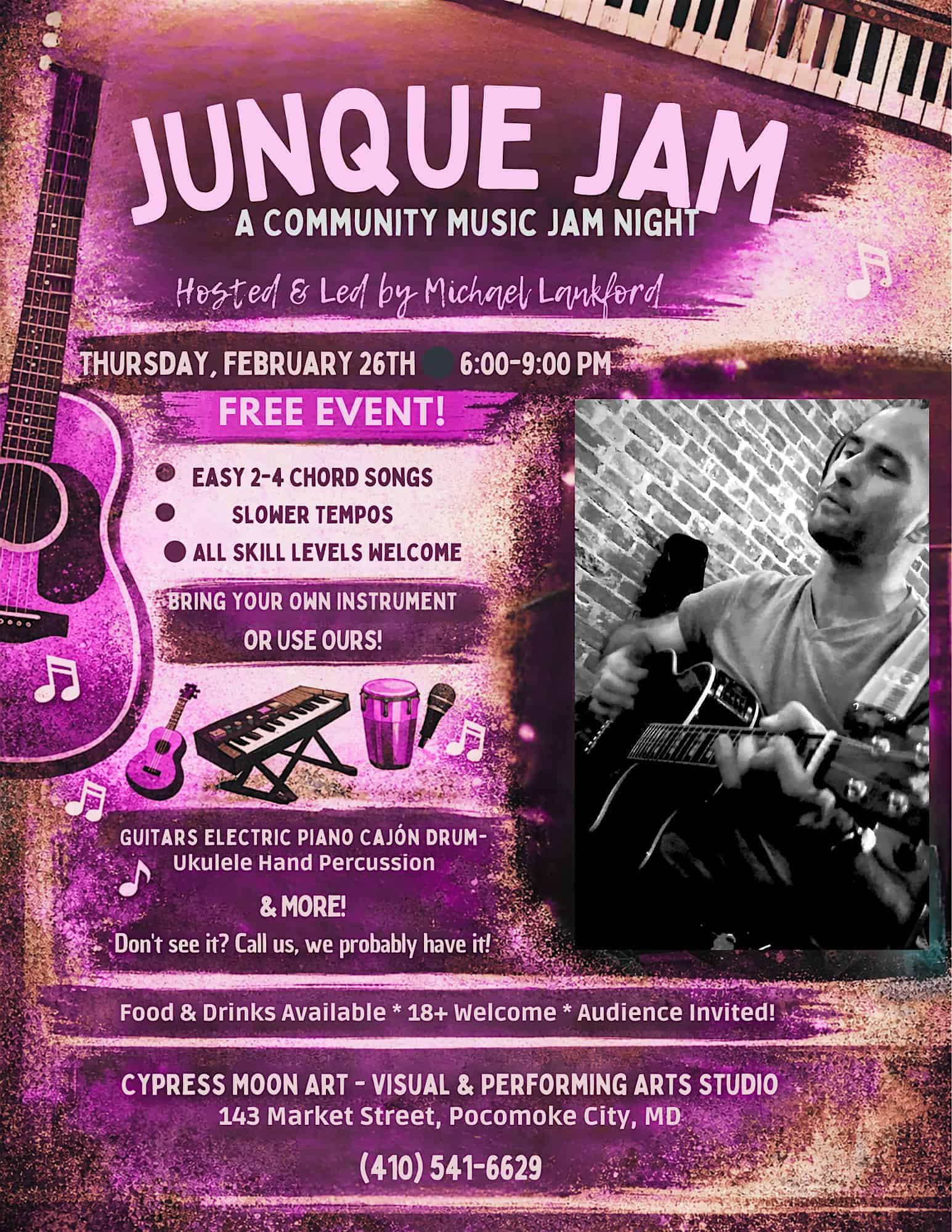 Junque Jam, A Free Community Music Jam Night with Michael Lankford at Cypress Moon Art Visual & Performing Arts Studio – Pocomoke City, MD