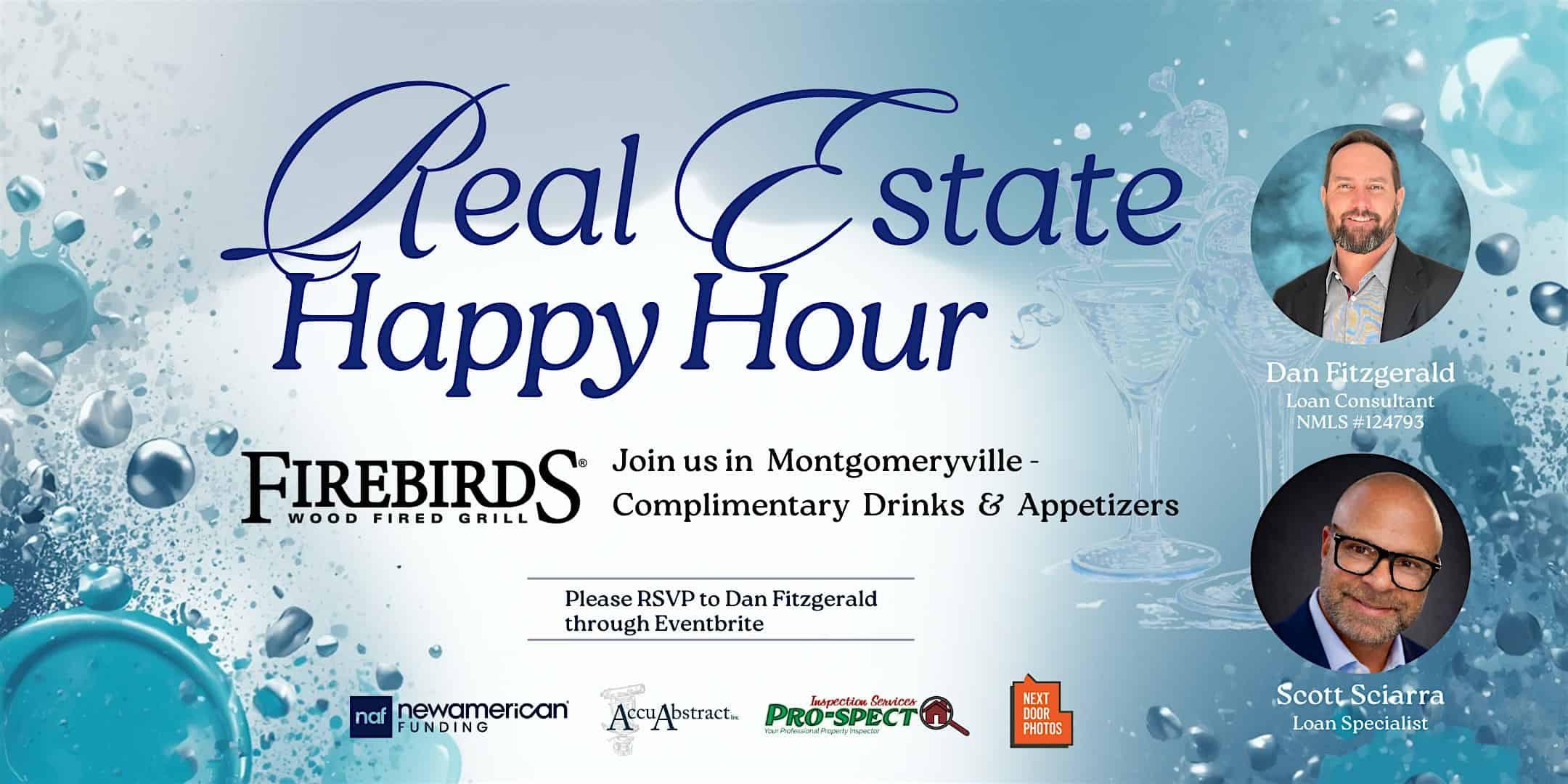 by admin14Feb Real Estate Happy Hour at Firebirds Wood Fired Grill – North Wales, PA Real Estate Happy Hour at Firebirds Wood Fired Grill – North Wales, PA 1 1 people viewed this event. Complimentary Drinks & Appetizers Tickets-RSVP Link Date And Time Thursday, February 26th, 2026 09:00 PM (PST) Venue Firebirds Wood Fired Grill Location 1220 Bethlehem Pike, North Wales, PA 19454 Event Types Party or Social Gathering Event Category Pennsylvania Share With Friends Facebook Twitter Linkedin Xing Pinterest Share This Post: