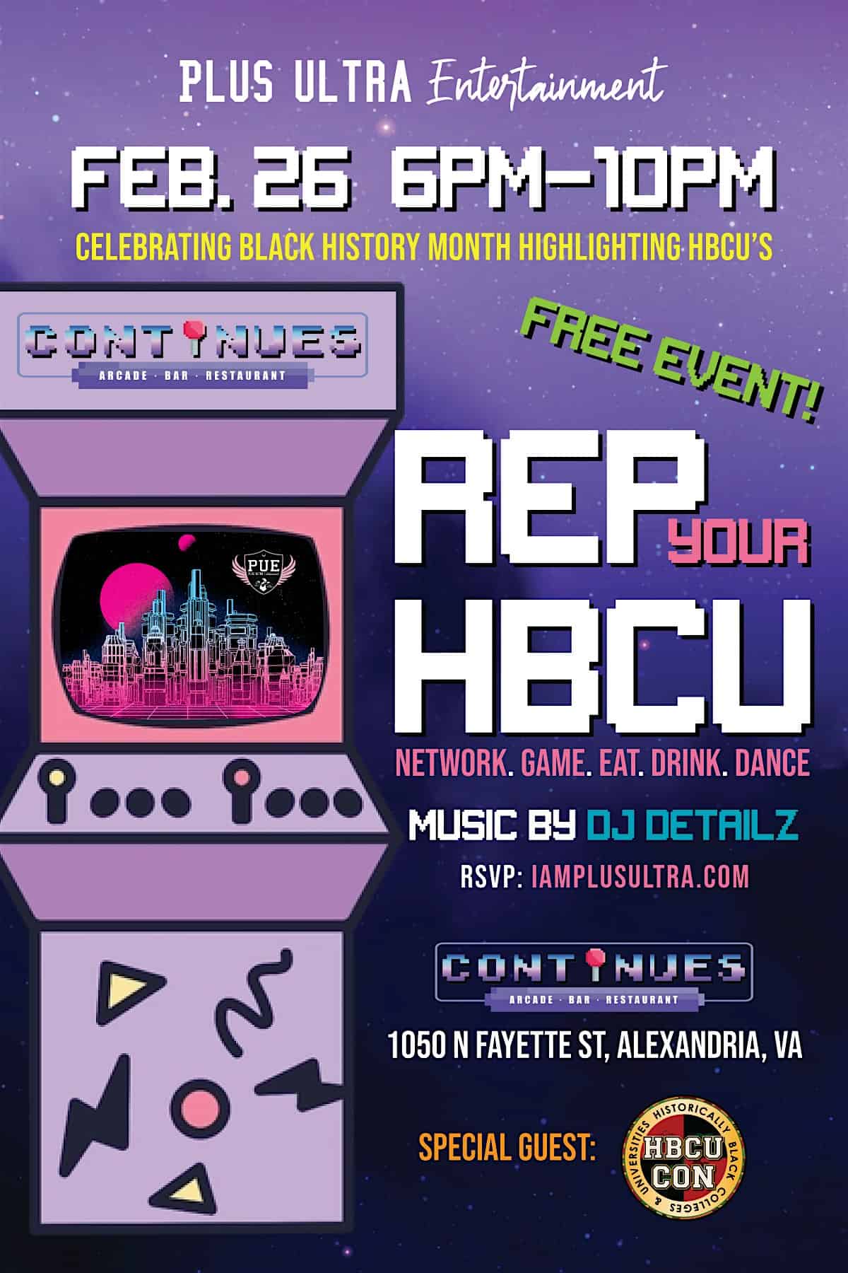 by admin14Feb Rep Your HBCU! at Continues Arcade – Alexandria, VA Rep Your HBCU! at Continues Arcade – Alexandria, VA 1 1 people viewed this event. Join us as we celebrate Black History Month and HBCU’s at Continues Arcade Bar in Alexandria, VA! Tickets-RSVP Link Date And Time Thursday, February 26th, 2026 11:00 PM (PST) Venue Continues Arcade Location 1050 North Fayette Street, Alexandria, VA 22314 Event Types Community & CultureParty or Social Gathering Event Category Virginia Share With Friends Facebook Twitter Linkedin Xing Pinterest Share This Post: