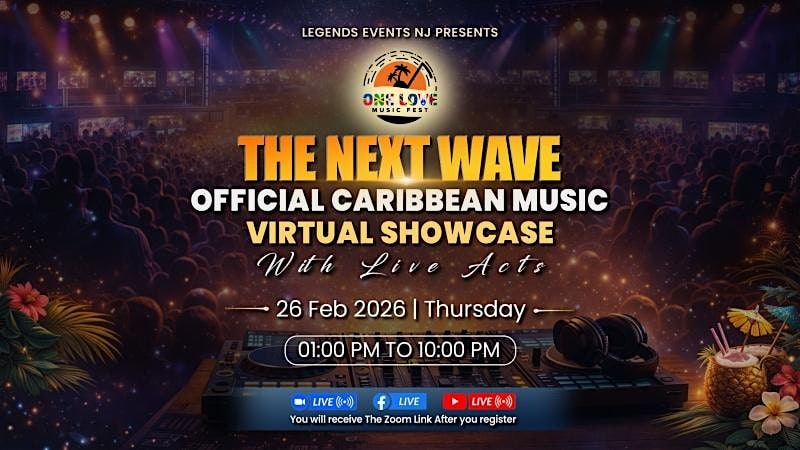 by admin14Feb The Next Wave Official Caribbean Music Showcase With Live Acts at 7018 – East Orange, NJ The Next Wave Official Caribbean Music Showcase With Live Acts at 7018 – East Orange, NJ 2 2 people viewed this event. Get ready to ride the Caribbean music wave with live acts – it’s going to be lit! Tickets-RSVP Link Date And Time Thursday, February 26th, 2026 06:00 PM (PST) Venue 7018 Location Sweets Lounge, East Orange, NJ 7018 Event Types Concert or PerformancePerforming & Visual Arts Event Category New Jersey Share With Friends Facebook Twitter Linkedin Xing Pinterest Share This Post: