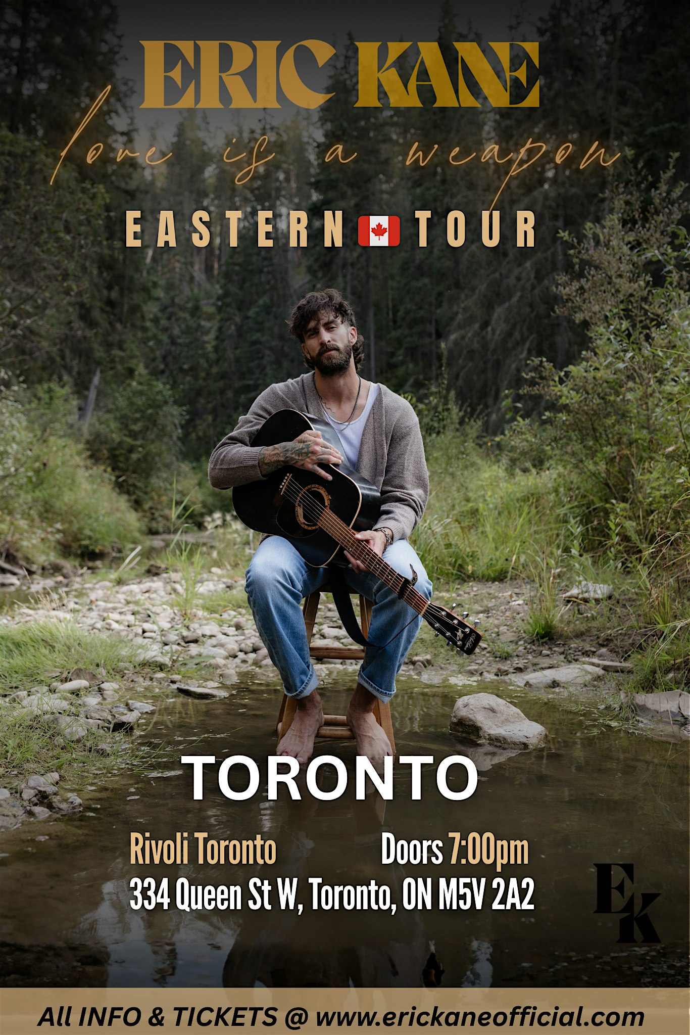 by admin13Feb Toronto Eric Kane’s ‘love is a weapon’ Eastern at Rivoli Toronto – Toronto, Canada Toronto Eric Kane’s ‘love is a weapon’ Eastern at Rivoli Toronto – Toronto, Canada 2 2 people viewed this event. Join Eric Kane at the iconic Rivoli for his first T.0. performance. Tickets-RSVP Link Date And Time Thursday, February 26th, 2026 12:00 AM (PST) Venue Rivoli Toronto Location 334 Queen Street West, Toronto, Canada M5V 2A2 Event Types Concert or PerformanceMusic Event Category CanadaToronto Share With Friends Facebook Twitter Linkedin Xing Pinterest Share This Post: