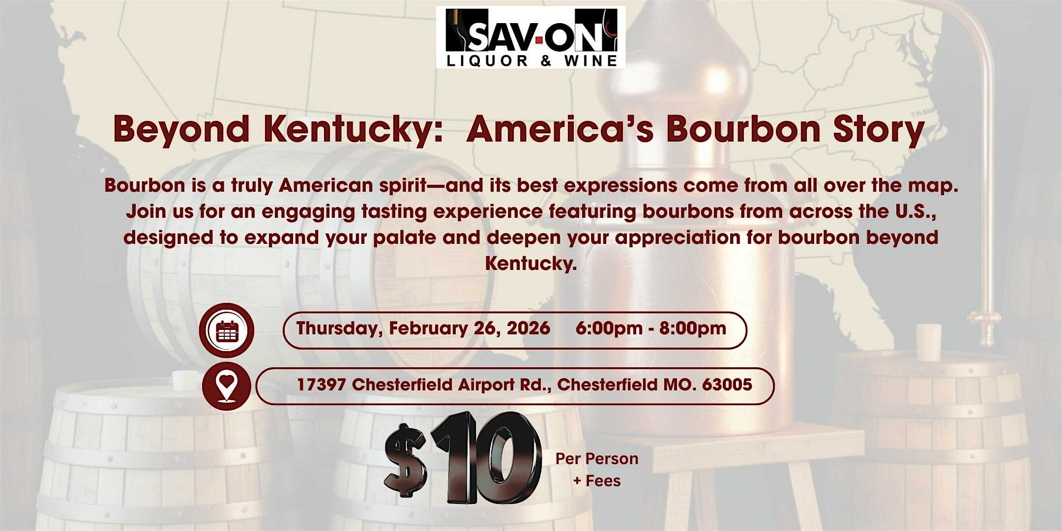 by admin14Feb Beyond Kentucky: America’s Bourbon Story at 17397 Chesterfield Airport Rd – Chesterfield, MO Beyond Kentucky: America’s Bourbon Story at 17397 Chesterfield Airport Rd – Chesterfield, MO 3 3 people viewed this event. Explore bourbon beyond Kentucky with a guided tasting featuring standout bourbons from across the United States. Tickets-RSVP Link Date And Time Friday, February 27th, 2026 12:00 AM (PST) Venue 17397 Chesterfield Airport Rd Location 17397 Chesterfield Airport Road, Chesterfield, MO 63005 Event Types Food & Drink Event Category Missouri Share With Friends Facebook Twitter Linkedin Xing Pinterest Share This Post: