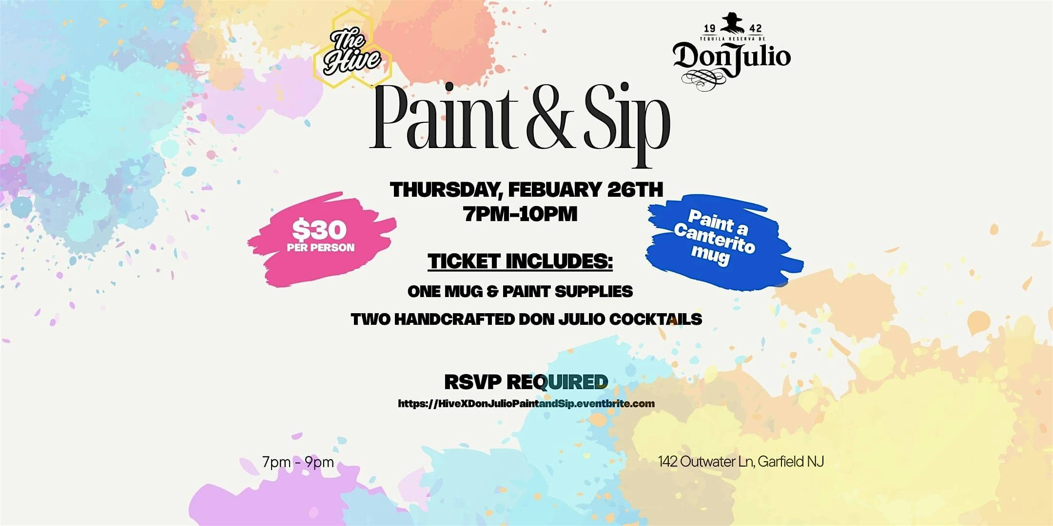 by admin14Feb Don Julio Paint & Sip at The Hive Bar & Bistro – Garfield, NJ Don Julio Paint & Sip at The Hive Bar & Bistro – Garfield, NJ 1 1 people viewed this event. Join us for a fun Don Julio Paint & Sip night—sip tequila, unleash your inner artist, and good vibes guaranteed! Tickets-RSVP Link Date And Time Friday, February 27th, 2026 12:00 AM (PST) Venue The Hive Bar & Bistro Location 142 Outwater Lane, Garfield, NJ 7026 Event Types Food & Drink Event Category New Jersey Share With Friends Facebook Twitter Linkedin Xing Pinterest Share This Post: