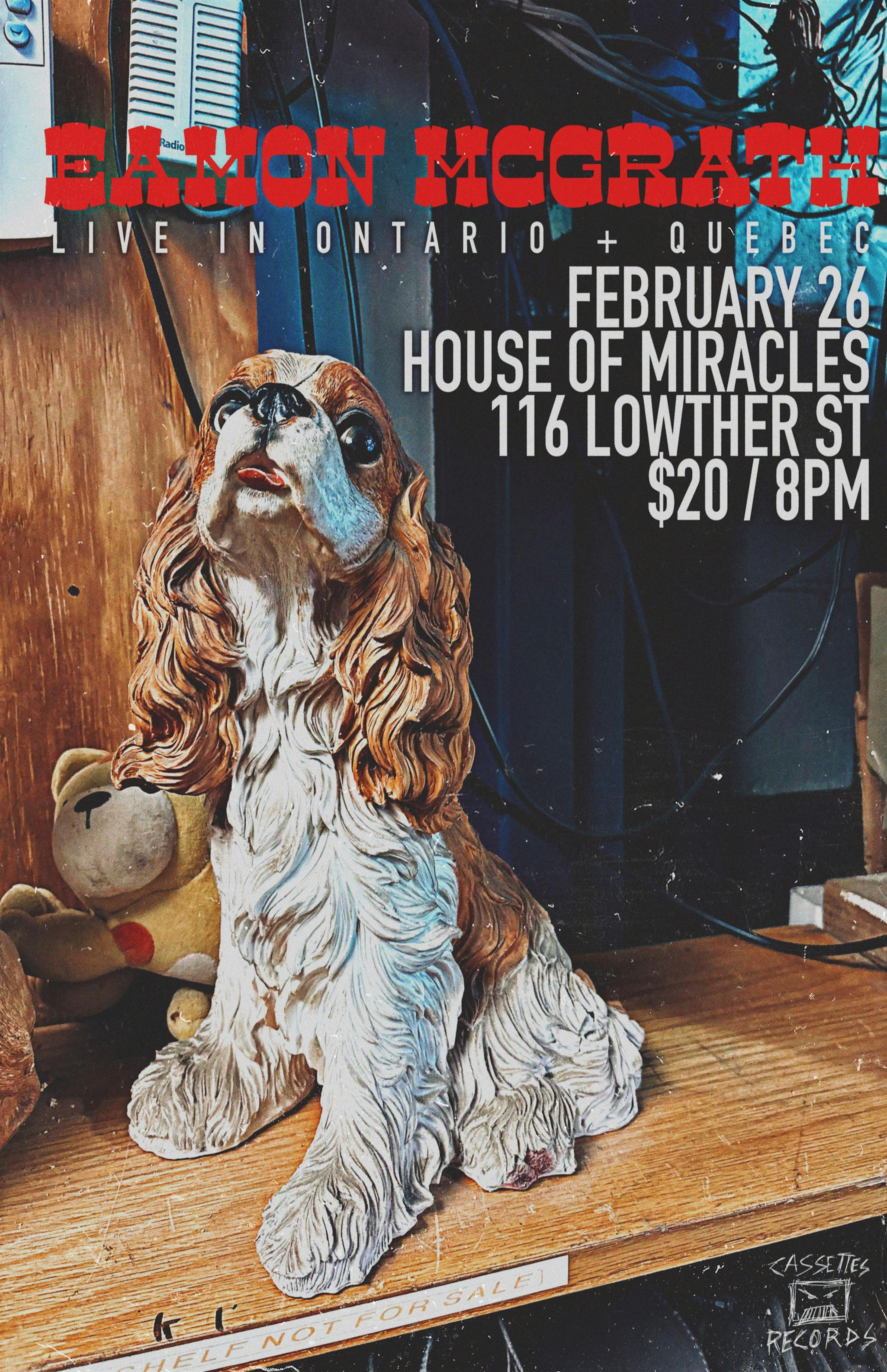 by admin13Feb EAMON McGRATH live at the House of Miracles at The House of Miracles – Cambridge, Canada EAMON McGRATH live at the House of Miracles at The House of Miracles – Cambridge, Canada 1 1 people viewed this event. EAMON McGRATH returns to Cambridge, ON for an intimate evening at The House of Miracles. Tickets-RSVP Link Date And Time Friday, February 27th, 2026 01:00 AM (PST) Venue The House of Miracles Location 116 Lowther Street South, Cambridge, Canada N3H 1Y5 Event Types Concert or PerformanceMusic Event Category Canada Share With Friends Facebook Twitter Linkedin Xing Pinterest Share This Post: