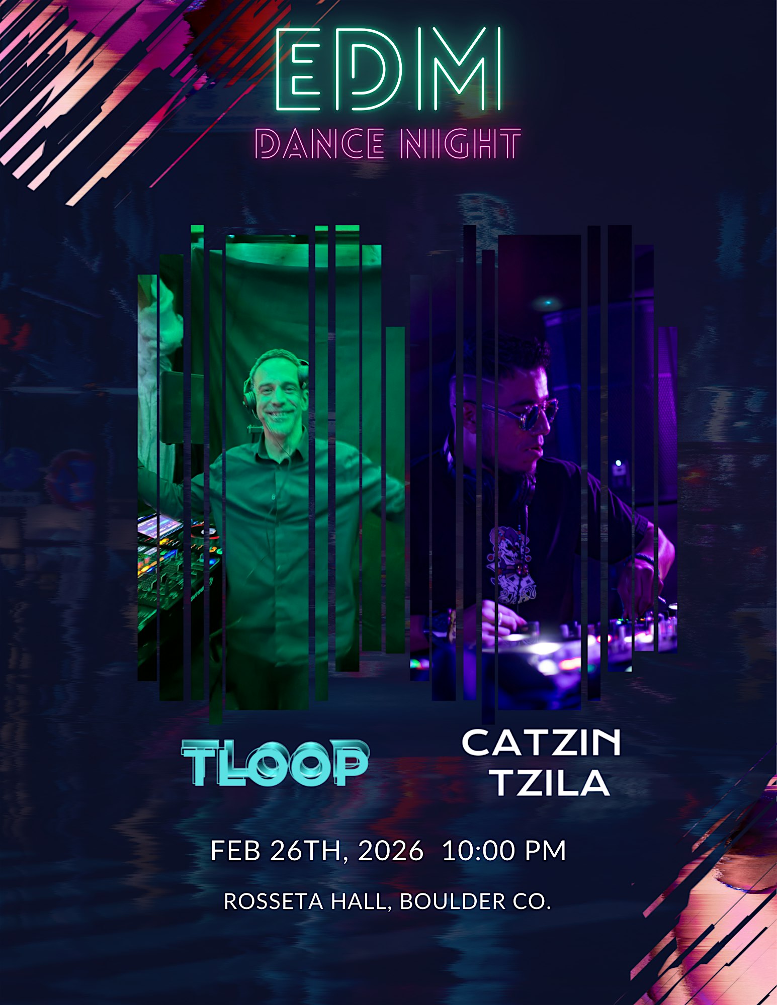 by admin13Feb EDM Dance -feat. Catzin Tzila / TLooP @ Rosetta Hall College Night at Rosetta Hall – Boulder, CO EDM Dance -feat. Catzin Tzila / TLooP @ Rosetta Hall College Night at Rosetta Hall – Boulder, CO 1 1 people viewed this event. Get ready to dance the night away to EDM beats with Catzin Tzila and TLooP at Rosetta Hall’s College Night! Tickets-RSVP Link Date And Time Friday, February 27th, 2026 05:00 AM (PST) Venue Rosetta Hall Location 1109 Walnut Street, Boulder, CO 80302 Event Types Concert or PerformanceMusic Event Category BoulderColorado Share With Friends Facebook Twitter Linkedin Xing Pinterest Share This Post: