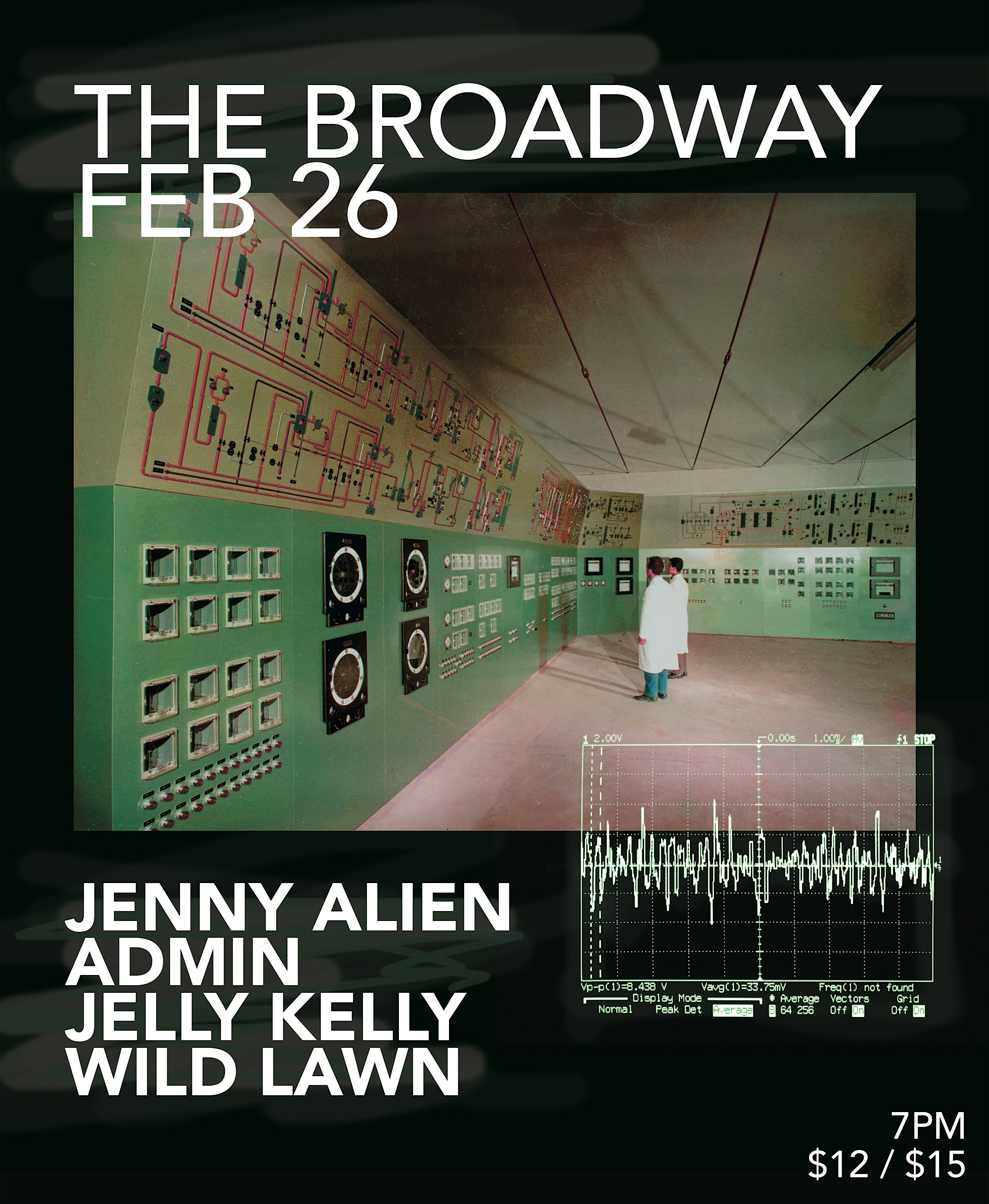 by admin13Feb Jenny Alien w/ Admin, Jelly Kelly + Wild Lawn at The Broadway – Brooklyn, NY Jenny Alien w/ Admin, Jelly Kelly + Wild Lawn at The Broadway – Brooklyn, NY 2 2 people viewed this event. Jenny Alien headlines The Broadway with Admin, Jelly Kelly and Wild Lawn Tickets-RSVP Link Date And Time Friday, February 27th, 2026 12:00 AM (PST) Venue The Broadway Location 1272 Broadway, Brooklyn, NY 11221 Event Types Concert or PerformanceMusic Event Category New York Share With Friends Facebook Twitter Linkedin Xing Pinterest Share This Post: