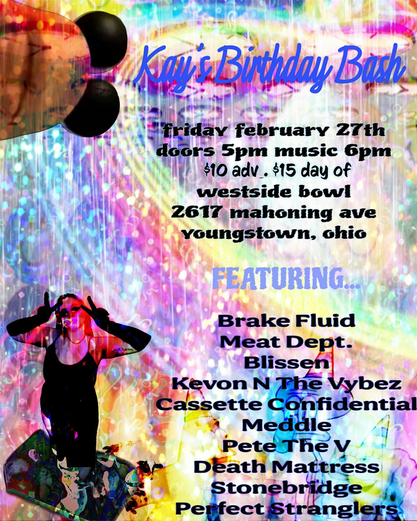 by admin13Feb Kay’s Birthday Bash at Westside Bowl – Youngstown, OH Kay’s Birthday Bash at Westside Bowl – Youngstown, OH 1 1 people viewed this event. Come celebrate Kay’s future belated birthday with us Friday February 27th at westside bowl! Tickets-RSVP Link Date And Time Friday, February 27th, 2026 11:00 PM (PST) Venue Westside Bowl Location 2617 Mahoning Avenue, Youngstown, OH 44509 Event Types Concert or PerformanceMusic Event Category Ohio Share With Friends Facebook Twitter Linkedin Xing Pinterest Share This Post: