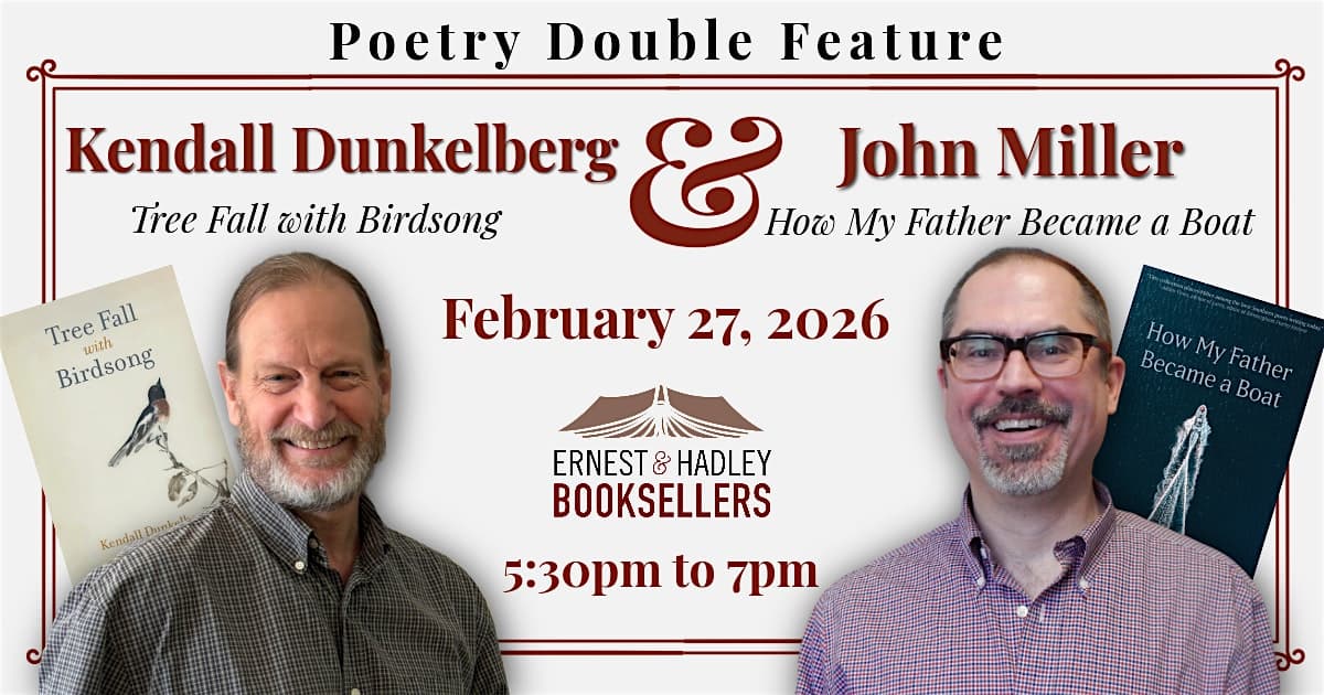 Kendall Dunkelberg & John Miller | Poetry Double Feature at Ernest & Hadley at Ernest & Hadley Booksellers – Tuscaloosa, AL